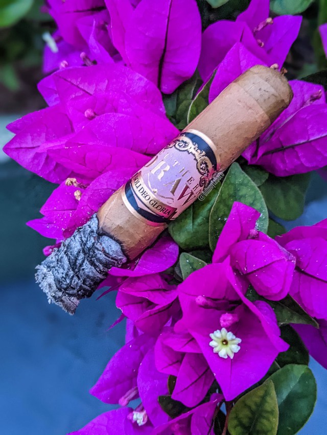 Una de las cosas que me llama la atención, entre tantas otras, de este Rose of Sharon, es que la capa tiene pocos aromas o al menos no son los típicos de esta capa. Se sienten más herbáceos o de grama y curado al fuego. En el pie se aprecian notas de pera y más de los otros de la capa, lo cual tiene sentido porque el pie es cubierto. Finalmente lo pico y la calada en frío presenta nueces, aserrín y tierra seca. El hecho que es un box pressed me llama bastante la atención, principalmente porque son pocos los lanceros que tienen ese prensado, pero es una manera de ahorrar tabaco o al menos no llevan tanto como los cilíndricos… quizá es solo porque se fuman mejor pero sí debo decir que la calada en frío muestra un tiro bastante más suelto de lo que esperaría de un cigarro con el pie cubierto.