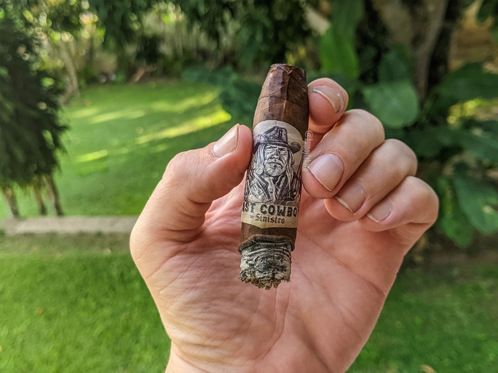 Gracias a que tiendo a esperar al momento perfecto o darle vueltas al cigarro y definir la mejor posición para la foto, las imperfecciones del The Last Cowboy no se notan tanto en cada imagen, pero la quemada ha requerido algunos retoques para garantizar una fumada agradable y sin problemas. Los sabores de pimienta se reducen, lo que permite que nuevamente aparezca el sabor a tierra en el cigarro, pero le acompañan nueces y madera, mientras que esas notas dulces siguieron evolucionando y mostraron algo más al estilo de marshmallow, con humo abundante y los mismos índices de fortaleza e intensidad. Al cabo de una hora, The Last Cowboy llegó a su fin.