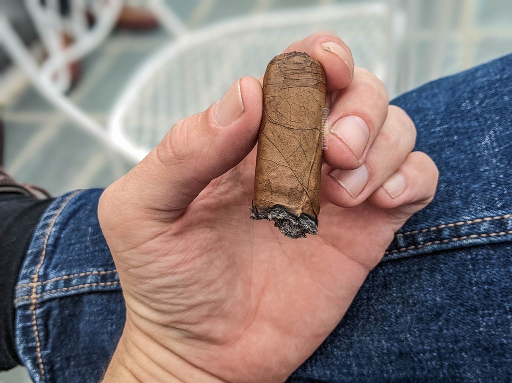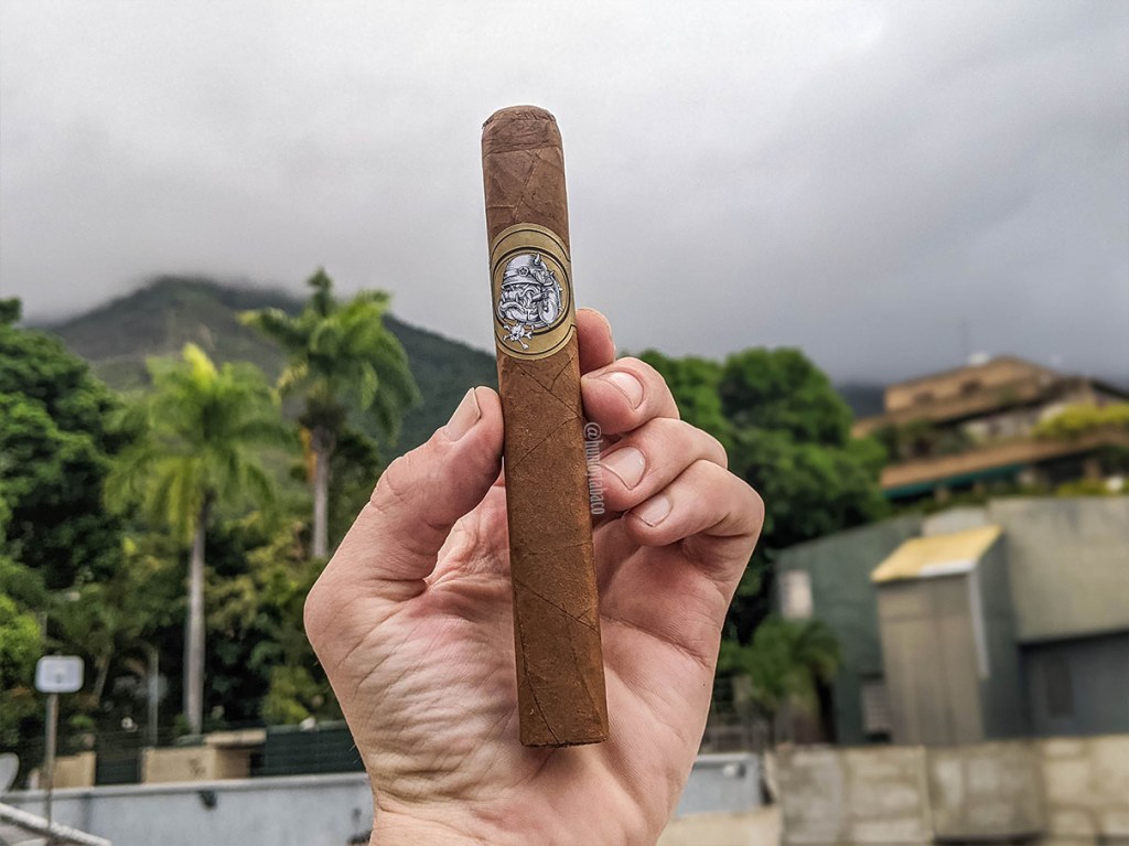 Hace unos meses adquirí un «mystery box» de una tienda y en ella venían algunos cigarros de esta línea, en capa Connecticut, Habano y Maduro. El cigarro tiene todas las dotes de un cigarro barato y realmente se siente como tal, al menos en este de capa Habano. La capa se siente extremadamente elástica, casi como si fuera plástica o de goma, muy brillante y con un box press notable. Tiene aromas que realmente son agradables y no son nada ‘plásticos’, como cuero y notas ligeramente perfumadas, e incluso una nota como de guardado que no me agrada y me agarro de ello como preámbulo de lo que estoy seguro que no será una gran fumada. El pie tiene toques muy suaves a notas perfumadas y madera, mientras que la calada en frío presenta apenas madera y algo de paja seca.
