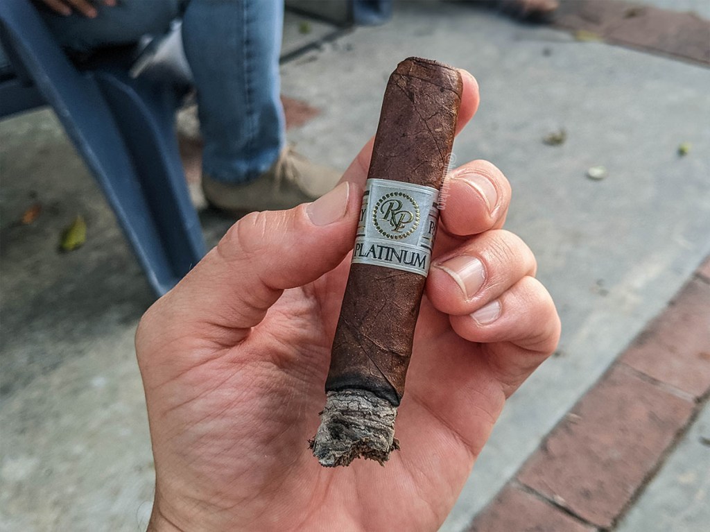 Lanzado en 2013, el Platinum de Rocky Patel estaba destinado a convertirse en uno de los productos que lleve el estandarte de la marca por todo lo alto. Su liga era completamente distinta a las mejores de Rocky, pero eso no lo hacía menos especial, con una capa Habano oscuro ecuatoriana, capote San Andrés mexicano y tripa nicaragüense y torcido en lo que en ese momento era objetivamente la nueva base de operaciones de la marca: TAVICUSA. Incluso, algo del tabaco de la tripa venía de las fincas de esa fábrica. El Platinum fue lanzado en tres vitolas, todas box pressed: robusto, toro y torpedo, básicamente porque son las vitolas más vendidas en términos generales. Pero estamos en 2022 y el Platinum hoy en día, aunque sigue siendo producido, es una edición limitada, pero realmente no lo conozco al punto de ser un cigarro que lleve el estandarte… de hecho, ni siquiera sabía que existía. Fue un seguidor quien me lo obsequió y fue con muchas ganas que me decidí a probarlo.
