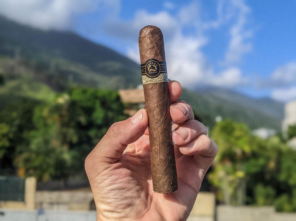 Pero este Padron Black es una edición bastante limitada, al punto que a la mayoría de amigos con quien compartí las imágenes me dijeron que no conocían un Padron con la anilla negra. Esto sucede porque el cigarro es parte de una línea para tiendas físicas pertenecientes al CRA, o Cigar Rights of America por sus siglas en inglés. Específicamente, este cigarro llamado Black No. 52 está incluido en la versión de 2022 y pertenece a un sampler que es lanzado dos veces al año, que incluye ediciones especiales de marcas como Alec Bradley, Arturo Fuente, Ashton, E.P. Carrillo, J.C. Newman, La Flor Dominicana, My Father, Oliva, Rocky Patel y Tatuaje. Por esa misma edición limitada, Padron no detalla los tabacos que incluye en el blend. Pero en la mano se siente ligeramente imperfecto, como si la capa no fuese tan lisa como Padrón me ha llevado a pensar que son sus capas. Es ligeramente corrugada y deja ver algunas venas, y tiene aromas interesantes ahumados y a cereza. En el pie se sienten ambos y un toque de pimienta. Luego de picarlo el aroma de la calada en frío es nuevamente diferente a lo que Padron me tiene acostumbrado, con una nota de tierra húmeda, casi del tipo que compras abonada en los viveros, notas cremosas y pimienta.
