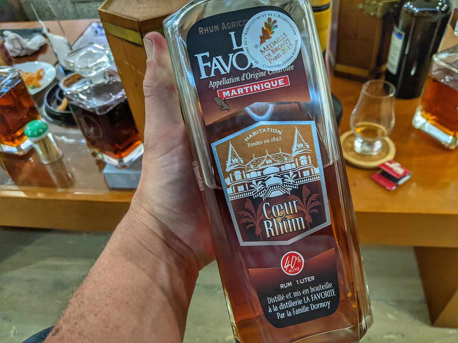 La Favorite es hecho por la destilería la destilería del mismo nombre, que tiene una producción modesta de unos 600 mil litros anuales. Fue fundada en 1851 a partir de una plantación de azúcar llamada La Jambette. En 1891, luego de sufrir varias dificultades financieras, un huracán acabó con ella y su reconstrucción tomó casi 20 años. En 1909 se aseguró que las vías del tren de Martinica pasaran por la destilería, lo que aseguró que su distribución fuera regular. Este Coeur Rhum es una de sus versiones más básicas, con un añejamiento que alcanza los 18 meses. Claro, siendo venezolanos y teniendo en Venezuela el estilo español, ver un ron de 18 meses te puede hacer arrugar la nariz. Pero el ron a partir de jugo de caña envejece muy diferente al de melaza y quizá por una producción menor, el total disponible es mucho menor, lo cual afecta el precio. El ron es embotellado a 40%.