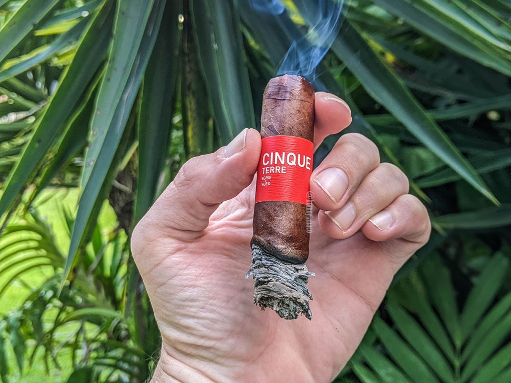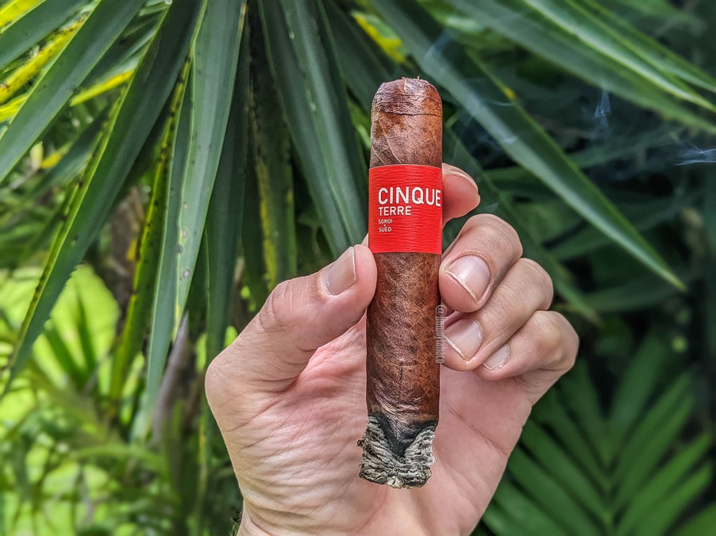 Cinque Terre significa cinco tierras en italiano y el cigarro recibe su nombre por incluir tabaco de cinco países: capa Habano ecuatoriana, capote Broadleaf americano y la tripa es de República Dominicana, Nicaragua y Haití. Siendo que Haití y República Dominicana comparten la misma isla, pensaría que su tabaco es similar, pero ya veremos qué tal y es especialmente interesante porque pese a la cercanía, nunca había oído de tabaco haitiano. El cigarro reposó durante 150 días en la fábrica antes de salir al mercado y está limitado a mil cajas de 10 cigarros. La capa desprende aromas más relacionados con un cigarro maduro y por su color realmente podríamos argumentar que es Habano madurado, pero esa mezcla de aromas entre pasas, uvas, chocolate y miel es muy llamativa. La tripa permite apreciar uvas, cuero y café, mientras que la calada en frío presenta notas de pimienta suave, tierra mojada, café y pasas.