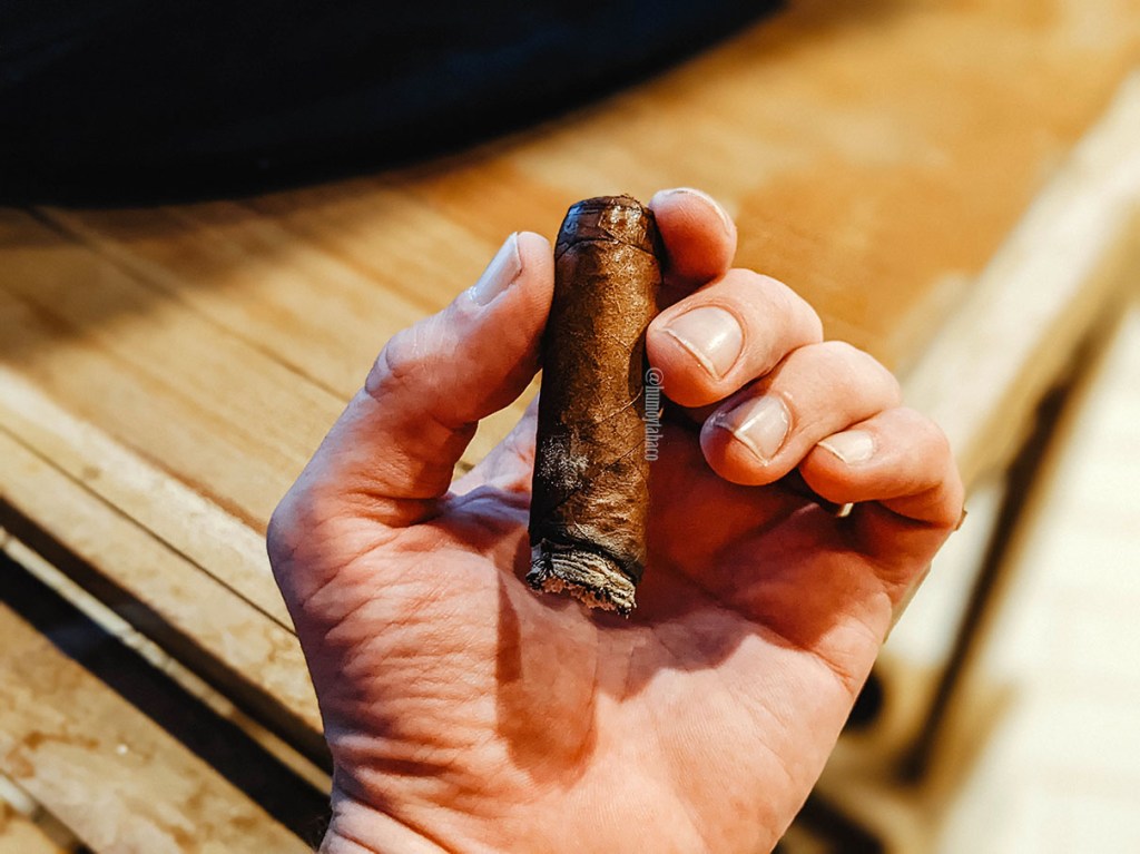 Llego al último tercio y en lo personal pienso «por fin». El cigarro se me ha apagado un total de 6 veces y durante este tercio se apagó dos más. Aparecen algunos sabores a nueces, pero con tanto reencendido, todos los sabores del cigarro tienen un toque tostado y creo que eso no es parte del blend. Incluso, cuando aún le quedan algunos centímetros de vida útil y fumada al cigarro, este se apaga nuevamente y decido no encenderlo de nuevo. Sería imposible determinar más sabores en este tercio, al igual que la intensidad y fortaleza.