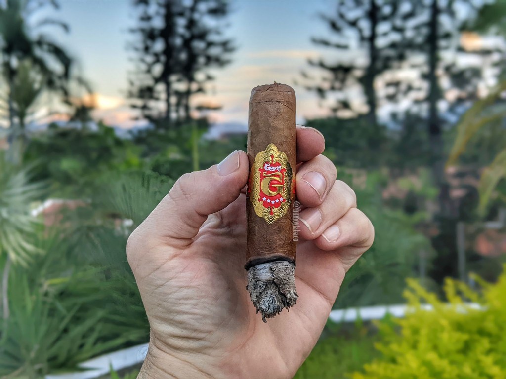Pero precisamente lo que mencionaba de ser un buen torcedor y un artesano, para lograr una ceniza así en un cigarro necesitas una buena mano de obra y pese al detalle en el anillo de combustión, el Artisan Triple Wrapper quema bastante bien, tiene un tiro fenomenal y desprende los sabores tan típicos de un maduro que esperaría, incluyendo chocolate, una nota suave de café, pasas, cuero, suave de pimienta y un poco más fuerte de caramelo. Intensidad es mucho más baja de lo que parece, incluso más baja de lo que suelen ser los 6×60 que es lo que este cigarro es. La fortaleza es media-baja, así que en realidad vamos bien.