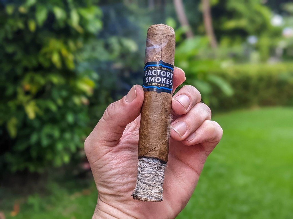 Comencé este cigarro un poco con el pie izquierdo, o al menos antes de encenderlo ya le tenía idea. Lo que pasó fue que un amigo me prometió que me iba a dar dos Powstanie Broadleaf y cuando llegó la hora de la entrega, solo me dio uno y este Factory Smokes, diciendo que como a mí me gusta probar cigarros distintos, pues quiso darme dos cigarros distintos. Dado que no es el primer Factory Smokes que fumaba, ya sabía más o menos qué esperar de él y no era nada que me llamara la atención. Pero igual lo encendí y lo probé y determiné que, efectivamente, no es un cigarrazo ni algo que llame mucho la atención para fumar y degustar, pero como segundo o tercer cigarro, como algo para fumar en la playa o algo para simplemente echar humo, está muy bien. Cualquier propósito más allá es exigirle algo que no te puede dar. No tiene grandes sabores ni intensidades ni complejidad, ni es interesante, pero si estás claro de lo que es y de su costo, te puede sorprender.