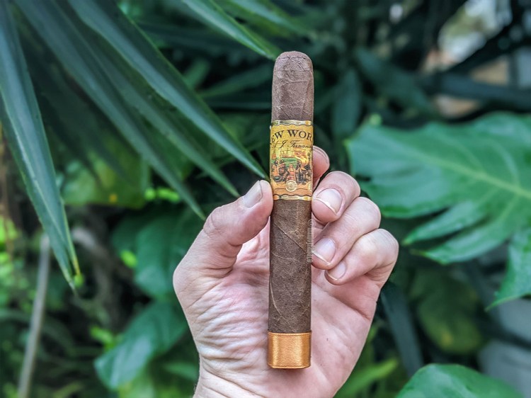 Entre la gran variedad de cigarros que he probado y comprado, no solo para reseña sino para consumo personal también, AJ Fernandez y sus distintas opciones y ligas para otras marcas siempre han sido un constante en mi humidor. Honestamente puedo decir que en los últimos 5 años, nunca ha faltado un cigarro de él conmigo. Se puede decir que soy un fanboy de la marca o que simplemente hago click con muchas de sus ligas, y la línea New World siempre me ha gustado. De hecho, el primer cigarro de calidad que fumé y el que me cautivó para tomarme el tabaco en serio fue el New World Oscuro, aunque en esa época solo se llamaba New World. Fue por eso que cuando vi el lanzamiento de este New World Dorado, sabía que pronto lo probaría, pues siempre consigo la manera de hacerme con los productos de la marca. En mi ignorancia pensaba que era una versión aniversario del New World, como celebrando no sé, diez años de la línea. Pero su nombre se debe a que casi todos los tabacos usados en el cigarro provienen de la finca Dorado, de AJ Fernandez, en Estelí.