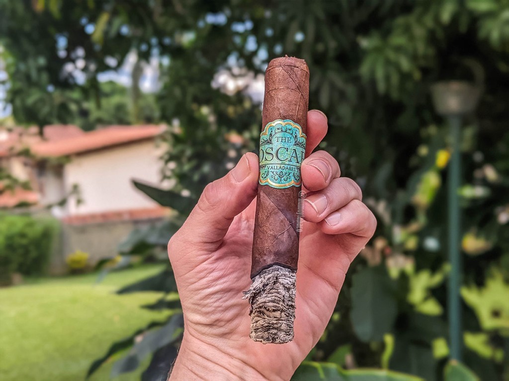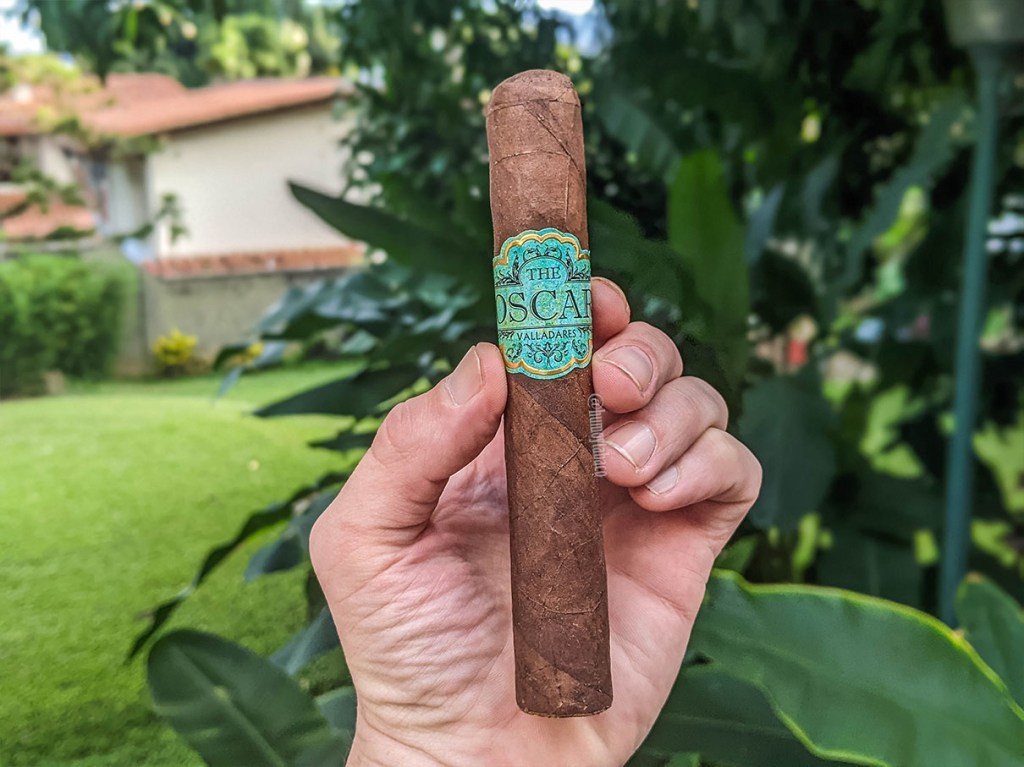 Hace cosa de unos dos o tres meses, estaba viendo samplers en una página que suelo visitar y me encontré con uno de productos de Oscar Valladares. Esta es una marca que comenzó muy, muy modesta, siendo apenas como un proyecto paralelo de un tipo que trabajaba en una tienda en Pittsburgh. Uno de sus primeros productos se llamó simplemente Leaf y no era ni siquiera para él, sino para “Island” Jim Robinson, quien era el dueño de esa tienda donde trabajaba. El gimmick del cigarro era que venía envuelto en una hoja de tabaco y aunque se veía muy atractivo, no era algo espectacular… solamente destacaba un tema artesanal. Luego Robinson se encargó de distribuirlos a nivel mundial y es así como puedes haberlo encontrado. Pero hace un tiempo apareció este producto llamado The Oscar, que no es lo mismo que el Leaf, sino una producción de Valladares que es para su propia distribución. El blend tiene una capa Habano ecuatoriana, capote hondureño y tripa de Honduras y Nicaragua. El cigarro viene envuelto en una hoja candela, que no es para fumarla o al menos yo no lo hice.