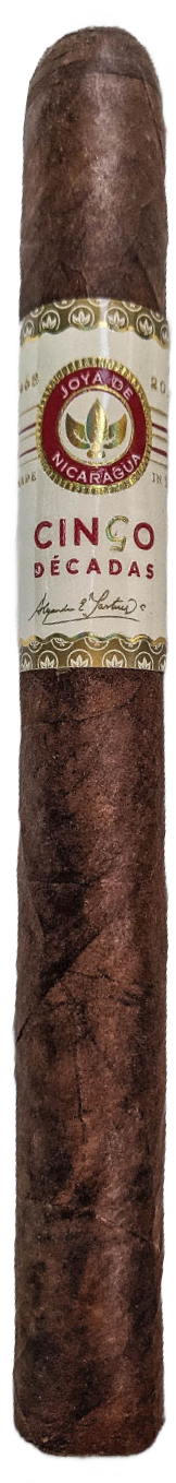 Para sus 50 años, Joya de Nicaragua diseñó y creó un cigarro que no es diferente a lo que Joya de Nicaragua suele producir, pero que a la vez es único en su portafolio. Esta marca realmente se ha destacado, sobre todo en la última década, pero cada producto que sacan tiende a ser predecible en el sentido que va a ser un gran cigarro, pero al mismo tiempo algo oculto, pues no es una de esas marcas con intensa participación en redes sociales. Creo que como lo están haciendo ha sido lo mejor, y en el Cinco Décadas es una fumada compleja, larga y detallada, y quizá demasiado larga, pero prefiero que dure mucho a que dure poco.