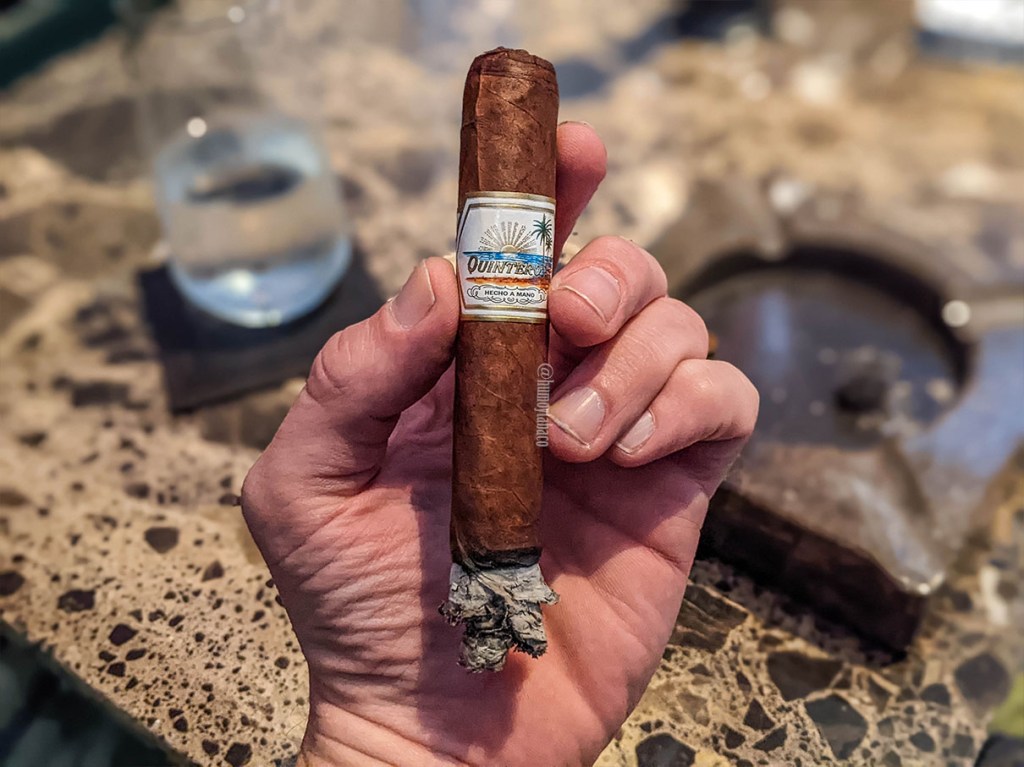 El Quintero no es el mejor ejemplo de un tabaco de buen sabor o de intensidad media, pero el hecho que cuesta menos de $6 por unidad y que nunca se haya apagado o tenido problemas lo hace una buena oportunidad para probar un cigarro aparentemente sin mayores problemas. El humo es abundante y tiene un volumen interesante, que sin duda sale muy bien en la foto… no necesariamente en las mías, pero si quieres sacar una imagen de una buena bocanada, este funciona para eso. En términos de disfrute, sería interesante como una fumada tempranera o dominical, sin grandes intensidades ni problemas de regañada, pero suficiente para no soltar el humo por la nariz muy regularmente. Dicho eso, durante la primera mitad se siente menos dominicano y más nicaragüense de lo que aparenta ser, y esas variaciones sin duda le aportan una mejor consideración en el todo de la fumada.