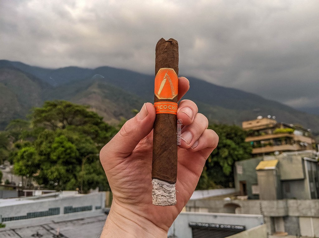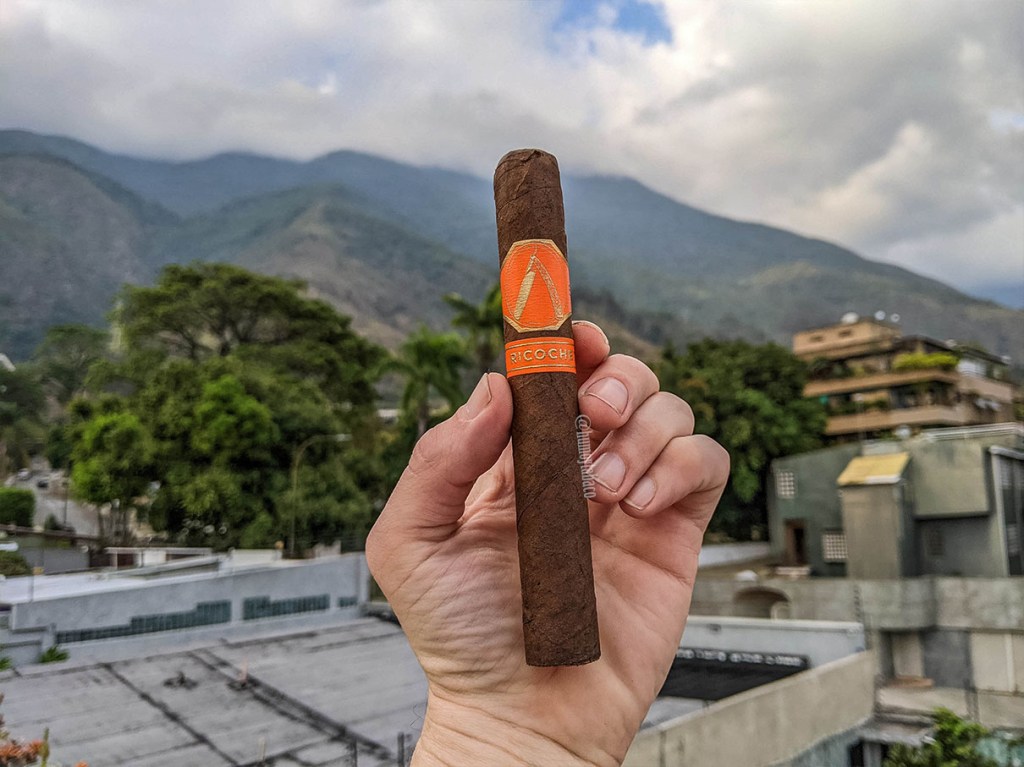 Si hay algo interesante del mundo del tabaco es la oportunidad de siempre aprender un poco más sobre la industria y sus productos. Yo venía dispuesto a hacer una recata de este Ricochet que había probado originalmente en 2019 y comparar ambas experiencias, pero mientras lo fumaba me di cuenta que no tenía nada que ver una experiencia con la otra. Así que investigué un poco y descubrí que si bien en 2019 existía solamente un Ricochet y ese era el que había fumado, hoy en día existen al menos dos variedades distintas del cigarro. Una es el Crü Mexi-Sol que probé el mes pasado y luego está este Crü Oscuro. Por un momento pensé que este cigarro sería el mismo que el original, pero hay diferencias. En capa y capote los tres son iguales, pero el original tiene Connecticut Broadleaf en la tripa, mientras que el Mexi-Sol tiene Pennsylvania Broadleaf en la tripa. Este Crü Oscuro simplemente no tiene ningún tipo de Broadleaf en la tripa, pero mantiene las hojas de República Dominicana y Nicaragua que tienen los otros. También, es media pulgada más grande que el Crü Mexi-Sol que fumé el mes pasado.