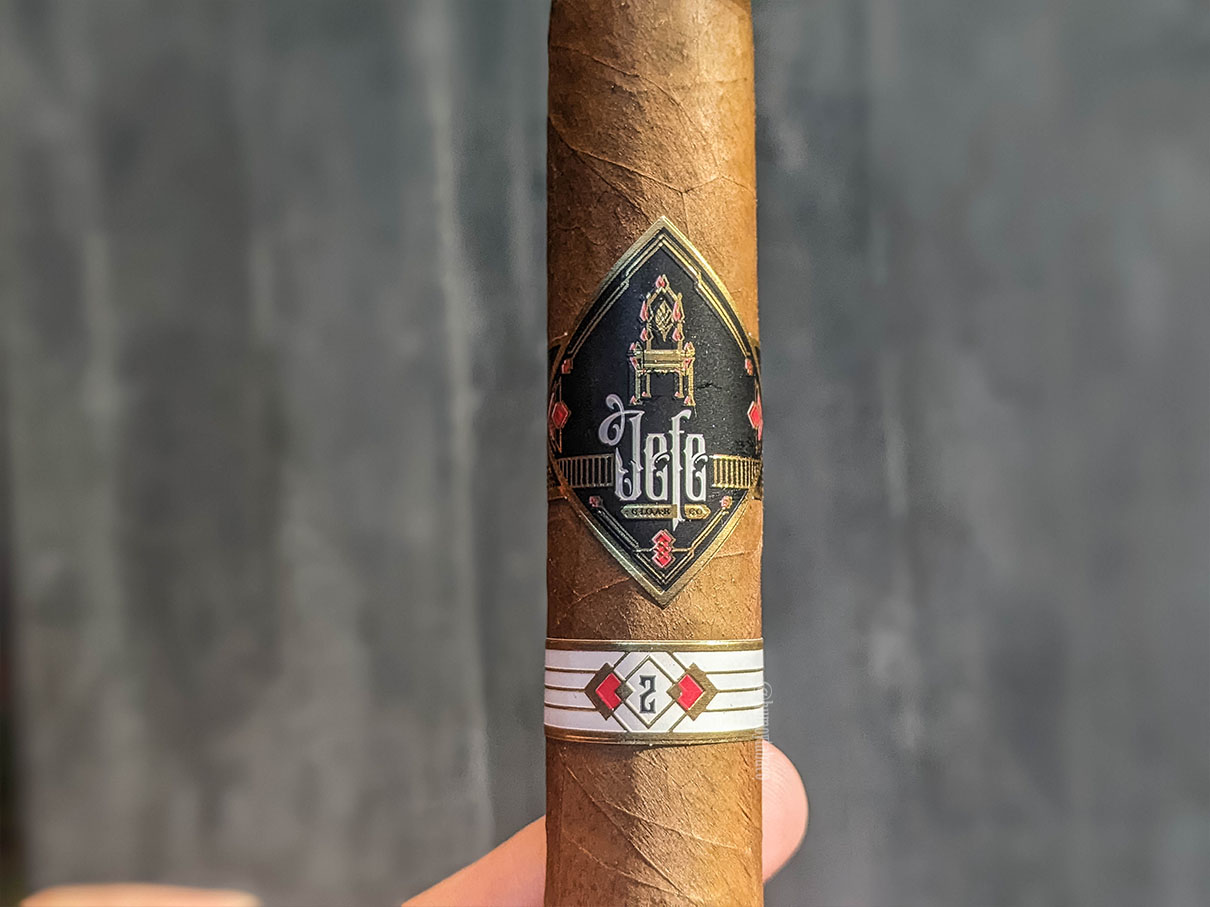 Con un nombre tan poco imaginativo tanto en marca como en producto, El Jefe es una marca de esas que destaca muchas veces en sus textos que son cubanos o que aprendieron sobre tabaco en Cuba o Cuba esto y Cuba lo otro, pero nunca especifican dónde son hechos los cigarros, aunque me atrevería a decir que son de Nicaragua, pero solo porque algunas de las hojas de la tripa son nicaragüenses. Su página web, precisamente destaca que tienen más de 100 años de tradición cubana, pero el producto es fabricado fuera de Cuba. Pero no importa, son muchas las marcas que hacen y dicen eso, y ya en este punto es inútil ponerse a discutirlo. Los blenders no son identificados en la página web, pero su experiencia abstracta sí e incluso algunas fotos de ellos aparecen. El master blender es identificado como Azarias “Z” Mustafa, mejor conocido como el de Cordoba & Morales. El producto que voy a probar lleva el nombre de Blend No. 2 y consiste en una capa Cameroon sobre tabacos de Nicaragua y la marca promete una fumada de fortaleza baja a media. La página ni siquiera especifica el tamaño de sus cigarros, pero al parecer este solamente está disponible en esta vitola.