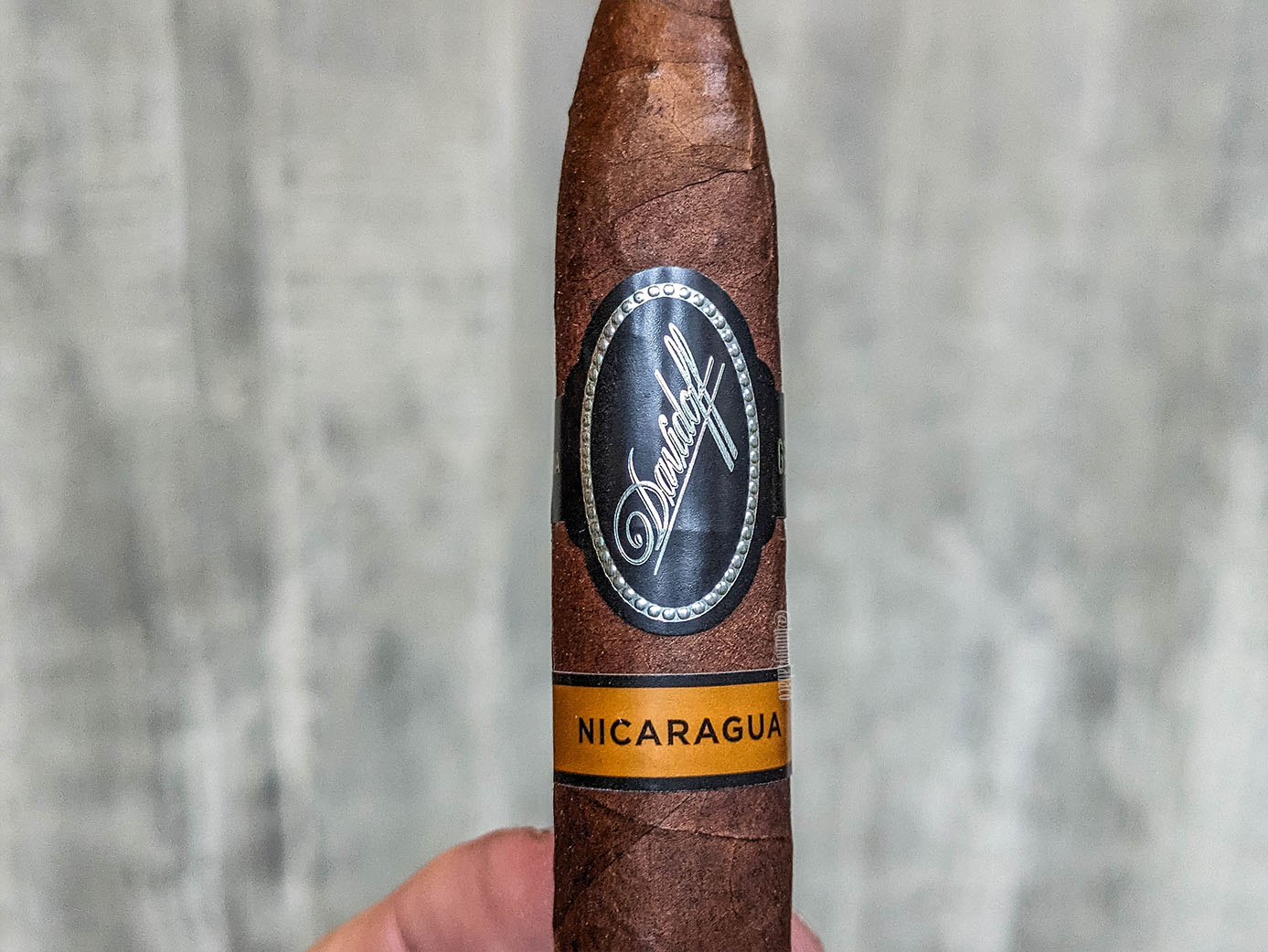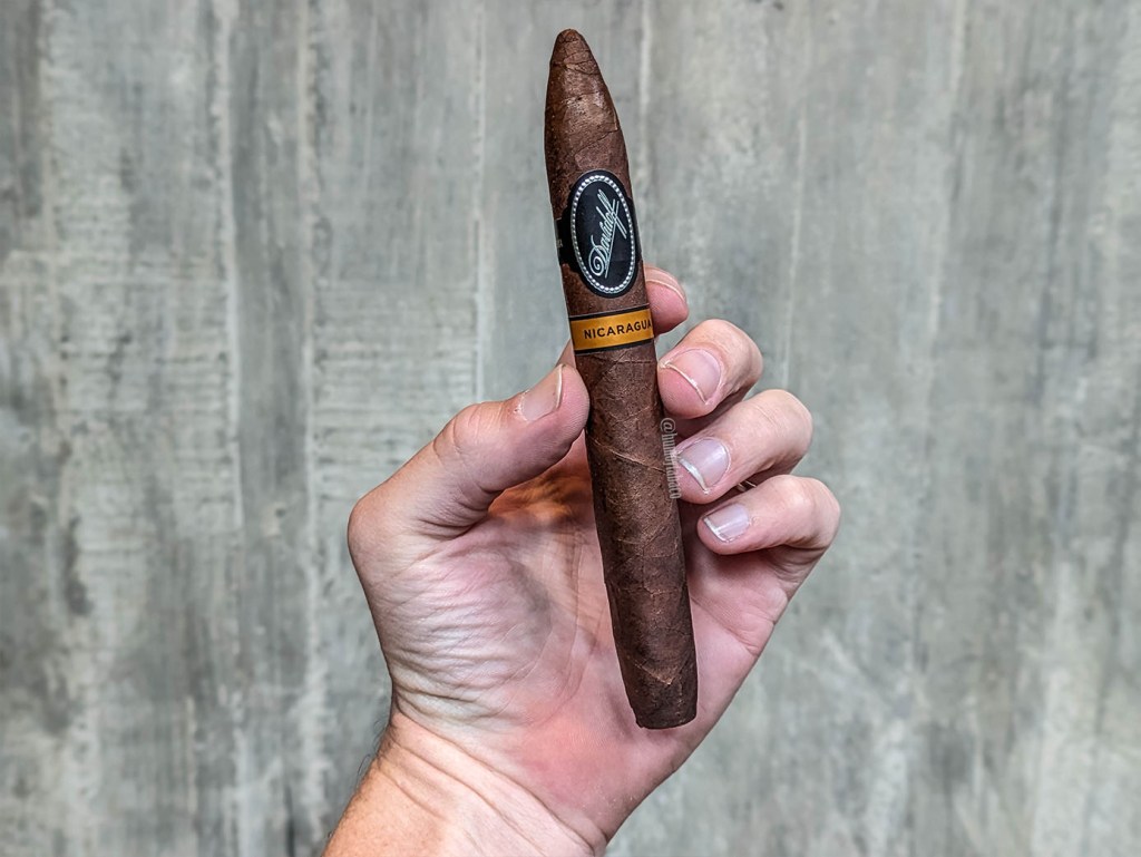 Esta es una reseña que me debía. Me la debía porque he probado los tres Davidoff de anilla negra: Escurio, Yamasá y Nicaragua, pero también porque mientras que el Escurio y el Yamasá me parecieron tabacos excelentes y excepcionales, mi experiencia con el Nicaragua fue terrible. Esto fue porque no solo se trata de un tabaco caro ($18), sino porque quemó muy mal y la consecuencia directa de eso, más allá de la atención que requiere, es que los sabores no se transmiten a la fumada. En esta ocasión lo fumé en otra vitola; la reseña que hice en 2019 fue con un belicoso y esta vez es una diadema, que viene siendo una especie de salomón mucho más estilizado y con puntas figuradas, pero por demás mucho más recto y es la presentación de mayor tamaño de la línea (6 1/2 x 50).