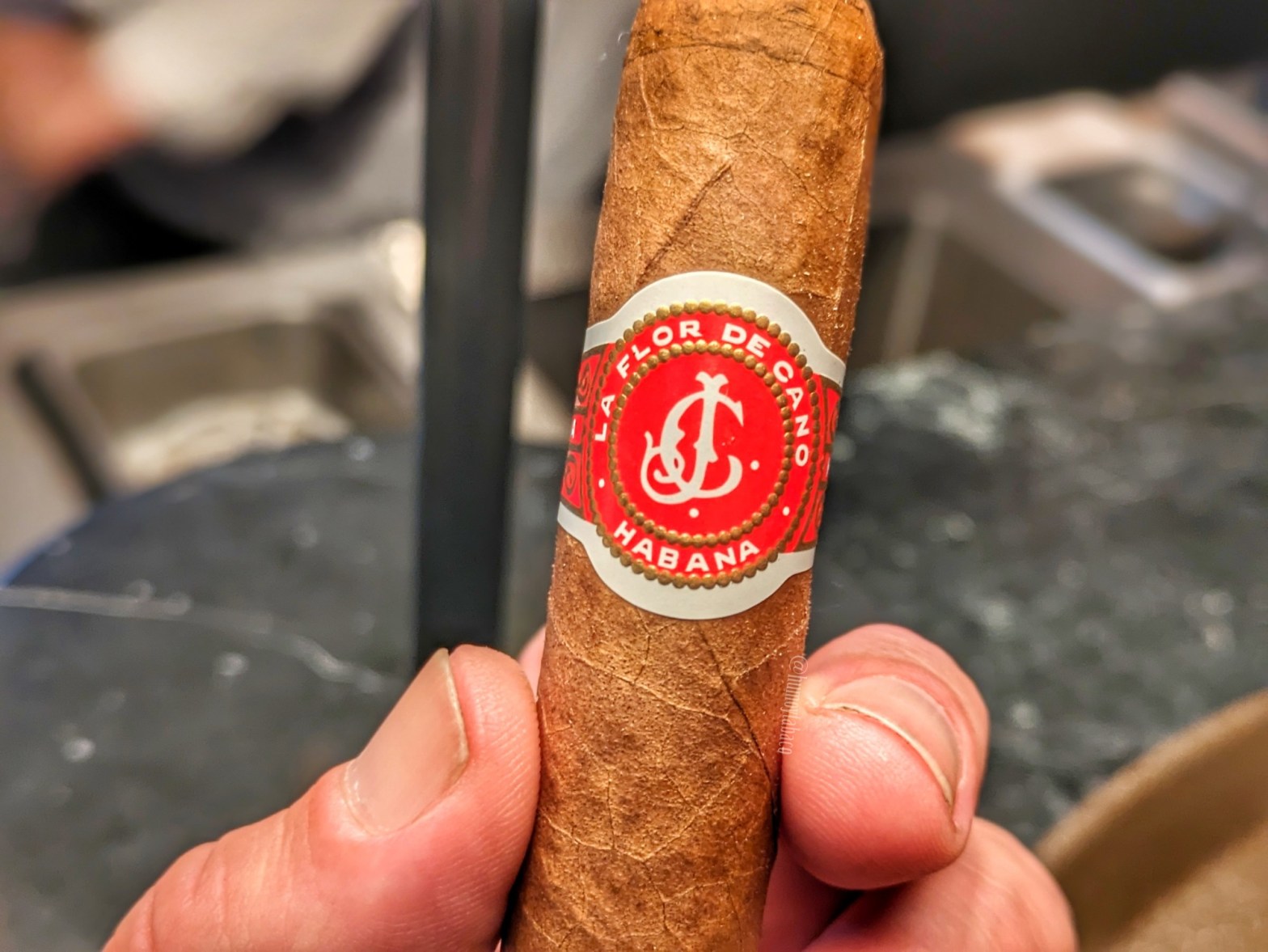Uno de los beneficios de estar trabajando tan de cerca con gente que importa y comercializa habanos de manera oficial es la posibilidad de ver y probar productos nuevos. Según Habanos SA, La Flor de Cano es una marca que se caracteriza por ofrecer un equilibrio entre sabores y aromas, a un precio medio. El vitolario de Flor de Cano, está conformado por Habanos elaborados «Totalmente a Mano con Tripa Corta» originaria de la zona de Vuelta Abajo de la región de Pinar del Río, Cuba. Este Elegidos se trata de un robusto con medidas 5 x 50 y, hasta donde tengo entendido, no son fáciles de conseguir o al menos no en cantidades grandes. Pero la gente con quien trabajo consiguió una caja y nos dispusimos a probarlo en conjunto, siendo unas 4 o 5 personas y comparando la experiencia.