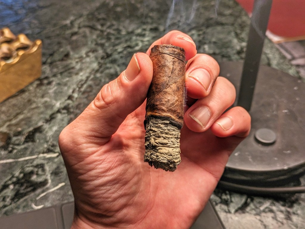 El Coast to Coast se va convirtiendo en unos de esos cigarros que no quieres que se terminen y comienzo a preguntarme por qué no lo adquirí en toro. En robusto está muy bien, pero temo por su final, porque lo estoy pasando muy bien con la fumada. La intensidad es alta y la fortaleza pareciera que va a alcanzar ese punto de alta, pero no termina de dar el paso. Los sabores de café adquieren una propiedad dulce y de caramelo, como si todos los sabores se fundieran en el último tercio, aunque la pimienta ya desaparece casi por completo, quedando relegada al retrogusto, que es donde parte del sabor de café se había mantenido como único participante desde las primeras caladas. Los sabores de miel y azúcar morena o melaza no tienen una gran participación, pero tampoco hacen falta. Luego de una hora y 20 minutos, este Coast to Coast llega a su final.