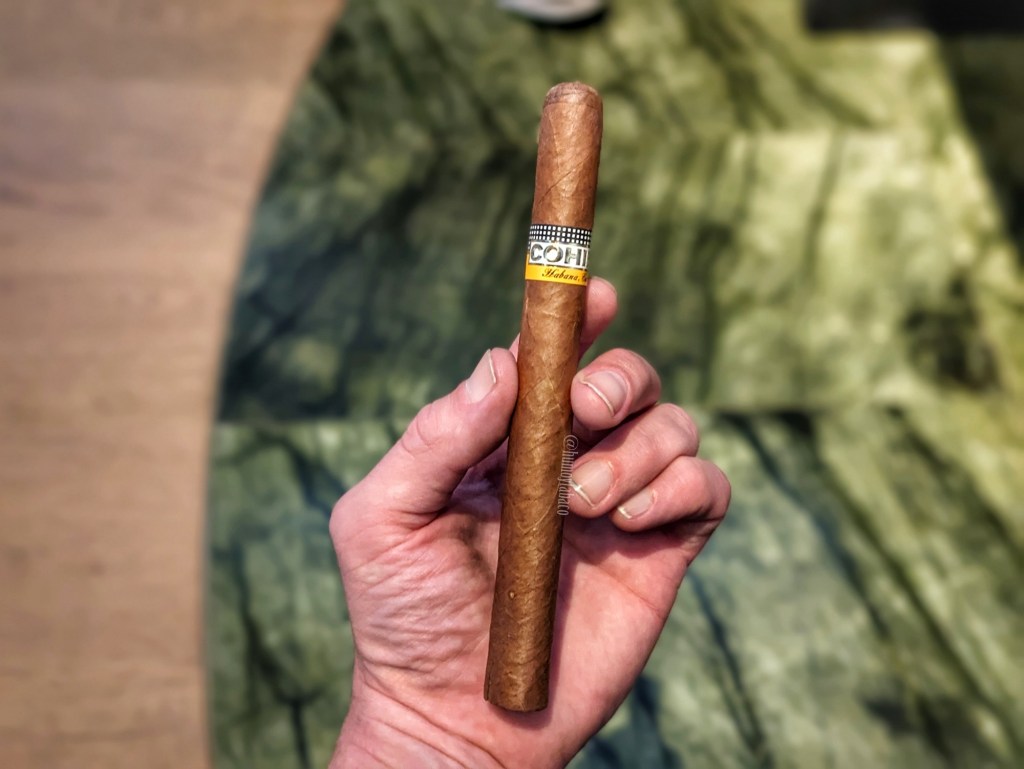 No es común poder llegar a fumar lo que conocemos como un unicornio, o un tabaco de baja producción y/o mucha demanda. En esta ocasión, este Siglo V no es realmente un unicornio, pues aún se consigue, pero la baja producción y los altos precios, especialmente de Cohiba en los últimos años, han convertido a este y muchos otros productos de la línea en casi unicornios. Ciertamente, viendo los precios de otros habanos de la misma marca, la cantidad de $85 por unidad no suena tan alta, pero Cohiba siempre ha sido la marca de lujo del abanico de Habanos SA y en los últimos años se ha convertido en super lujo. Los más atentos y curiosos podrán darse cuenta que el cigarro que voy a reseñar es de las anillas viejas, un diseño que en efecto fue descontinuado en 2016 y es que este ejemplar es de 2008 y tengo la fortuna de tener un amigo que es coleccionista de habanos vintage y este es uno de ellos.