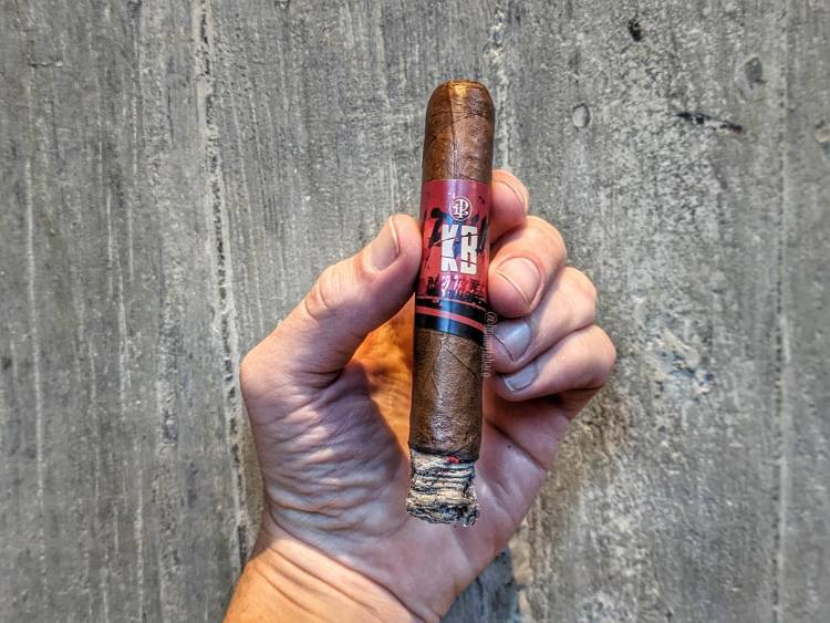 No hay un cambio notable de sabores en el último tercio tampoco, ni de intensidad, ni de fortaleza. Se mantiene encendido mejor, pero más allá de eso, el cambio es nulo. Con una quemada más consistente, el anillo de combustión y la columna de ceniza se ven mejores y en términos generales el KB sorprende más, o al menos te puedes ver mejor fumándolo. No hay mucho más que decir y el único cambio notable es que en el retrogusto los sabores se han simplificado un poco y son principalmente de canela y secundarios de pimienta y más nada. Me toma una hora y 15 minutos fumar el Kill Bill.