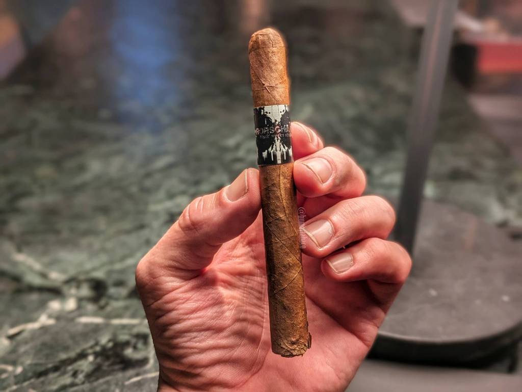 Debo tener fácilmente cuatro años sin reseñar un producto de esta marca (exactamente 4 años y una semana). Esta marca Black Works Studio es como la versión más atrevida de Black Label Trading Co. y sus productos usualmente eran parte de un pack mensual de Cigar Federation al que estuve suscrito durante un buen tiempo, pero durante la pandemia tuve que pararlo. Esta marca es propiedad del matrimonio de James y Angela Brown, quienes no solo tienen esta y BLTC, sino que además son dueños de la fábrica Oveja Negra y ambos viven en Estelí, aunque son americanos. El Rorschach forma parte de sus tres productos originales de lanzamiento de marca, mientras que los otros dos son el NBK y el Killer Bee. Desde 2015 han hecho otros productos que puedes ver si haces clic en el enlace de la marca que coloqué más arriba. Este Rorschach tiene una capa Habano ecuatoriana sobre capote y tripa nicaragüenses y está disponible únicamente en esta pequeña vitola 5 x 38.