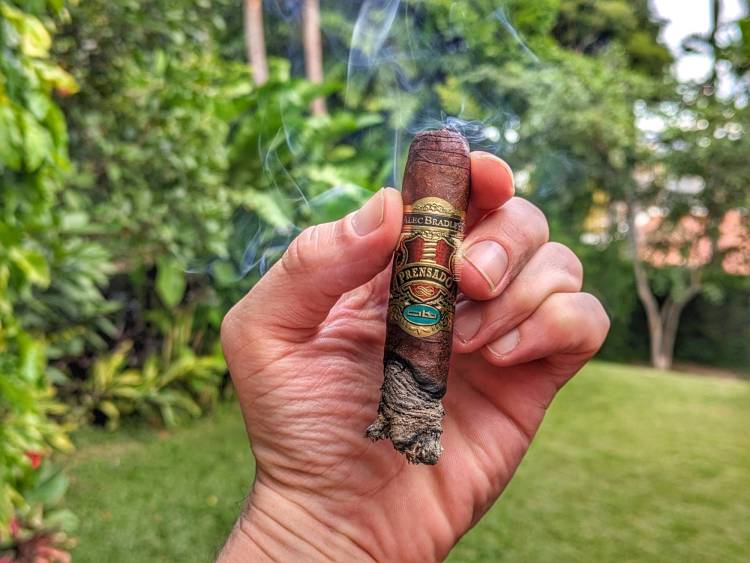 Por allá por 2011, cuando yo ni pensaba comenzar a fumar y cuando aquí en Venezuela tampoco se fumaba tanto, o al menos yo no conocía a tanta gente que fumara, Alec Bradley salió ganadora del puesto #1 en Cigar Aficionado con el Prensado. En mi haber de fumador, he probado este cigarro en robusto y en toro. Luego de probarlo en toro, me pareció un cigarro excepcional y de ahí me compré como 10, pero ninguno estuvo a la altura. Luego leí un poco sobre el blend y descubrí que la marca, para poder lograr la demanda que tenía por el cigarro, comprometió el blend y le puso hojas que no eran las mismas. Básicamente hicieron una religa. También leí distintas noticias que mencionaban que esta era una práctica común en el mundo del tabaco y de Alec Bradley. Tal fue mi desilusión que no lo volví a comprar. Pero hace un par de años, un amigo probó el robusto y me comentó que estaba al nivel del original. Lo probé y me pareció que estaba bueno, aunque no a ese nivel. Pero el año pasado un amigo me obsequió 3 de estos Prensado, de la serie original de 2011 y en la vitola que ganó el puesto #1 en la revista. Así que tenía que probarlo.