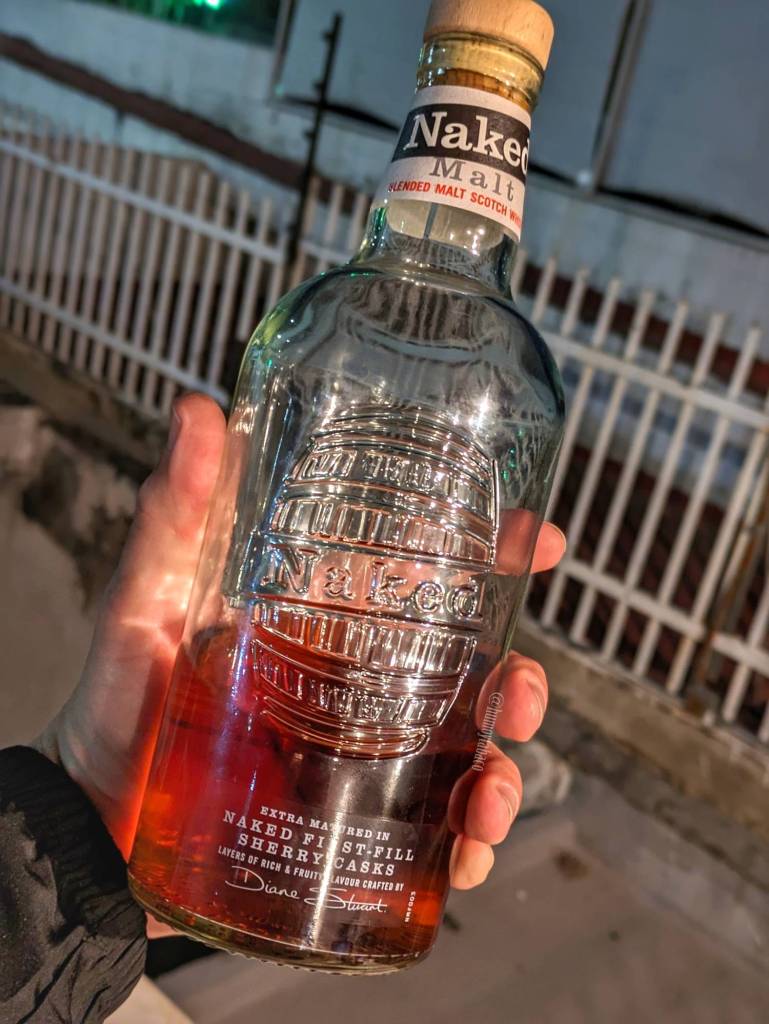 Los whiskies que componen Naked Malt son de Highland Park, Macallan, Glenrothes y Glenturret, todos combinados en una barrica ex-jerez de primer uso. Su nombre Naked viene por varias razones. La primera es que destacan todo lo que está incluido en la botella, por lo que no esconden nada y, por ende, están «desnudos» (naked en inglés). La otra es que la barrica ex-jerez está desnuda, o sin nada que la identifique. Por último, la botella no tiene etiqueta, solo vidrio en relieve y alguna pegatina transparente por fines legales, así que también está «desnuda».