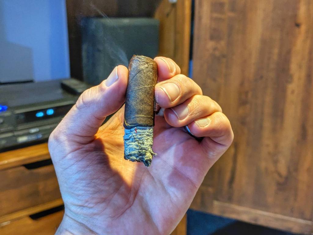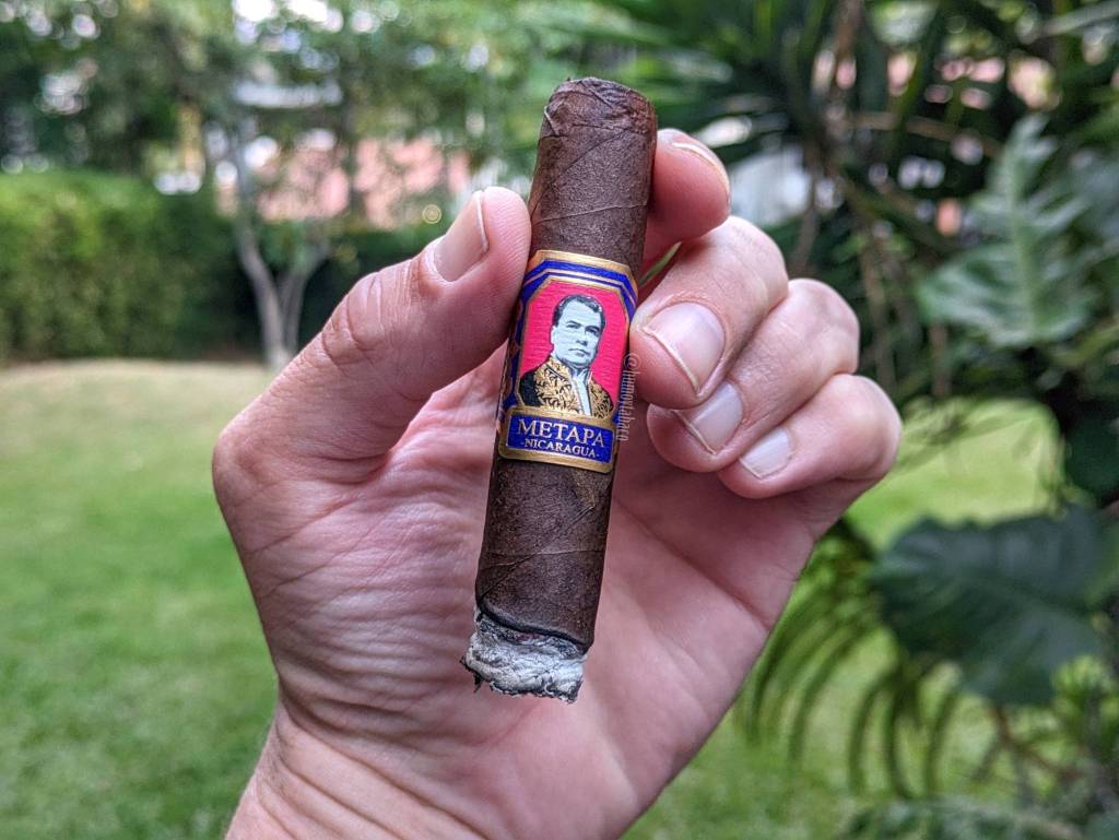 En el último tercio los sabores se simplifican un poco, pero no por ello quiero decir que sean menos complejos, pues siguen estando más o menos los mismos e incluso hay notas considerables de madera, pero el sabor de café espresso lleva como el 40% de la intensidad de todo el cigarro y se sienten notas de almendras, chocolate, madera y pimienta entre los secundarios, con muchas nueces, chocolate negro, canela y pimienta en el retrogusto. Aunque la pimienta se ha suavizado un poco en el retrogusto, es imposible ignorarla. Incluso hacia los últimos embates del Metapa Maduro se sienten notas de regaliz negra, que no es uno de mis sabores preferidos, pero en toda esta mezcla se siente muy bien situada. La fortaleza se mantiene en media-alta, afortunadamente pero la intensidad sigue en alta y cada calada es una delicia, aunque termino algo golpeado luego de una hora y 40 minutos fumando esta delicia.
