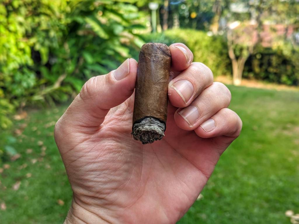 La pimienta es progresivamente más suave en el último tercio, donde los sabores de chocolate se van sintiendo más intensos también, pero no al punto de las avellanas. Entre el resto de los sabores se encuentran masa de pan, madera de lápiz (o alguna variación de madera que no es roble) y cuero, pero los sabores de avellanas no varían, así como tampoco los frutos rojos en el retrogusto. La construcción perfecta desde el principio y viniendo de AJ Fernandez la fabricación, no podía esperar más. Cuando estoy aproximándome a las últimas caladas, la fortaleza llega a media-alta, mientras que la intensidad se mantuvo en alta todo el tiempo. Así llego a una hora y 15 minutos de fumada.
