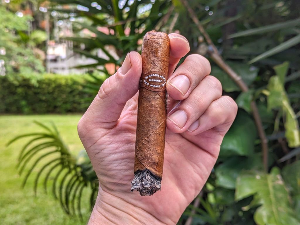 En el último tercio es donde la construcción realmente ha salido a relucir y a destacar un excelente trabajo de los torcedores, algo que no me espero normalmente en cigarros de menor precio como este, pero aquí está. Los sabores son similares al tercio anterior, incluso manteniendo esa tendencia de no concentrarse en un sabor dominante, sino más como distintos protagonismos. Precisamente, es el sabor de café el que más ha destacado en este tercio, pero con una nutrida participación de canela, madera de roble y miel, aunque con una sensación un poco más picante pero también más floral. La fortaleza y la intensidad se han mantenido en medias durante este tercio, al igual que en el resto de la fumada. Fue una hora y media de duración, lo cual en realidad fueron como 15 minutos más de lo que esperaba.