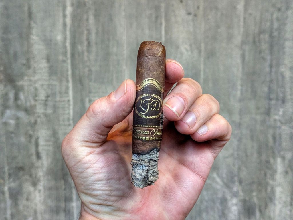 El Cameroon Cabinet no es un cigarro nuevo para mí, pues en mayo de 2022 lo reseñé en una vitola llamada No. 3. Otra cosa curiosa de este cigarro es que ese No. 3 tiene una anilla muy distinta a este y en un principio pensé que se trataba de una anilla vieja y el que tengo es la nueva, lo cual es muy posible y una visita a la página de La Flor Dominicana parece confirmarlo. Así que sin más, me dispuse a probar este robusto de medidas 5 x 50 y con una capa que destaca muchas venas e imperfecciones, lo cual puede resaltar sus orígenes muy naturales. En la capa se aprecian aromas cárnicos, aunque no tanto de corteza de carne sino más como de cuero y tierra húmeda. En el pie me encuentro con aromas a paja y una nota ahumada que me llama la atención y me recuerda a los Toscanos, lo cual se repite en la calada en frío, pero con una sensación más picante.