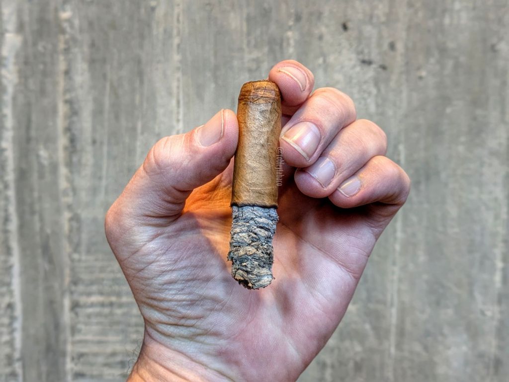 En el último tercio la fortaleza es mayor, pero creo que se trata de un aumento en la nicotina pero no de la pimienta. De hecho, los sabores se mantienen consistentes y eso solo que cada calada se siente un poco más fuerte. Hay sabores nuevos y uno de ellos es una nota de especias dulces que me recuerda al clavo de olor, pero también hay algo como de carbón vegetal, como cuando estás encendiendo una parrilla. La pimienta vuelve a ser la roja y la quemada sigue siendo ideal, lo cual se mantiene hasta los 55 minutos, que es cuando dejo el cigarro a un lado, dudando si tomo un palillo de dientes para terminar de fumarlo.