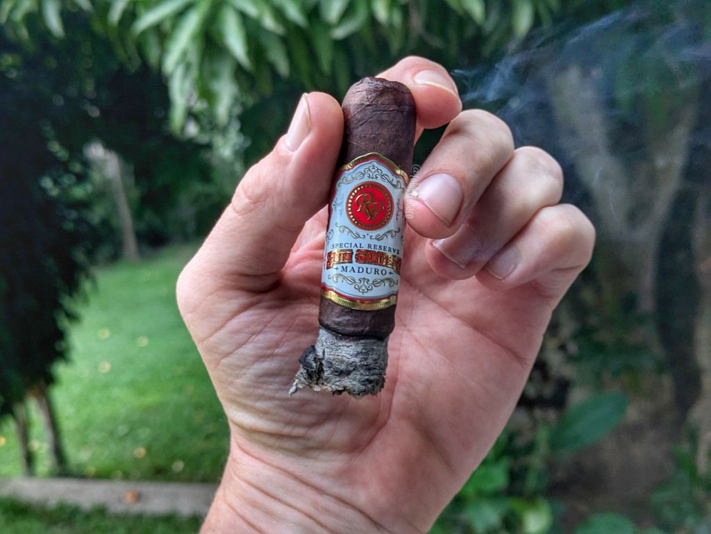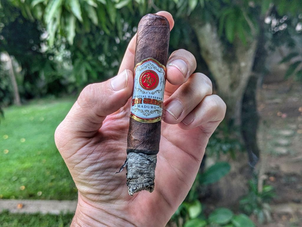 En el año 2016, Rocky Patel se colocó en el puesto número 2 del Top 25 de Cigar Aficionado con este Sun Grown Maduro. Ese mismo año, un amigo viajó y me trajo dos ejemplares de ese cigarro, que reseñé antes de que el cigarro apareciera como los mejores del año. En ese momento le di 89 puntos al mismo que ganó, que era robusto. Pero hace un par de años, haciendo una compra, encontré una buena oferta por ese mismo cigarro en toro. Los he tenido en el humidor desde entonces y hace unos meses decidí guardar el último para hacerle reseña, aprovechando que es otro formato: el que fumé era 4½ x 50, mientras que el toro es 6½ x 52, así que hay algo de diferencia más allá de una sola pulgada. También pasa que este tiene dos años de guarda y el que fumé originalmente estaba nuevo.