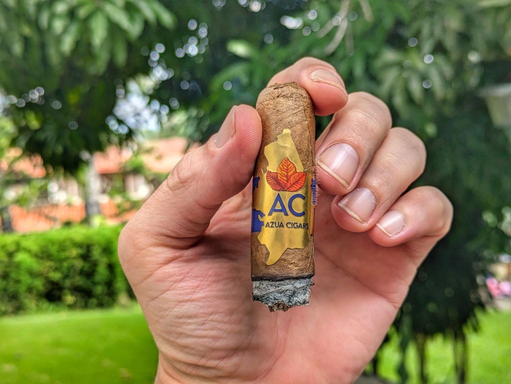 Algo positivo que destacar de la línea de los Azua es que cumplen a cabalidad lo que prometen. Definitivamente son cigarros hechos para principiantes, incluso mencionan que también pueden ser cigarros para personas que fuman más de uno al día, en donde el La Recta es un cigarro para media mañana, el Pueblo Viejo es un cigarro para después de almorzar y un tercero llamado Trilogía puede ser para cerrar el día. Sería interesante hacer la prueba, aunque de momento me toca es cerrar este Pueblo Viejo, que en verdad no es tan suave como dicen, pues en la segunda mitad se fortalece un poco, aunque no lo hace tanto en intensidad de sabores, pero sí hay un cambio. Tengo muy poco negativo que decir de él, solo que me gustaría más si estuviese disponible en una vitola mayor.