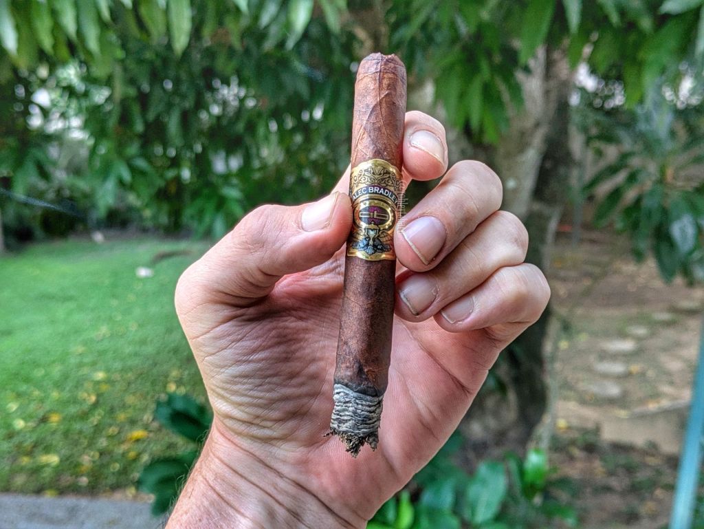 Recién encendido y durante gran parte del primer tercio los sabores son principalmente de madera, pero como cuando pones un trozo de leña a la parrilla. A lo largo del tercio también hay notas de tierra seca y esa nota de madera eventualmente se transforma en cedro. También me encuentro con sabores de chocolate negro y pimienta durante este tercio, pero nada que llamaría destacado. Quema muy bien y la ceniza se sostiene perfectamente, incluso para un cigarro con un cepo tan pequeño, pero nada mal, aunque el tiro no es el mejor y solo lo puedo atribuir a los 10 años que puede tener en el humidor. La fortaleza es media-baja, con una intensidad similar.