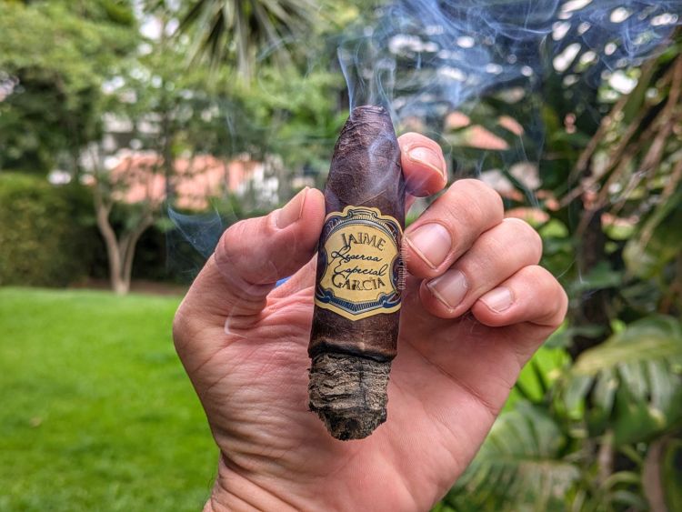 Con un área de quemado tan extensa, de verdad que es muy gratificante ver que quema de manera pareja y con un anillo de combustión bien formado, incluso sin mucha insistencia. Los sabores se hacen esperar, pero es un tema que pasa cuando fumas un cigarro de este tamaño. Los sabores son de tierra y cuero, con un toque de café en el retrogusto, pero eso es cuando de verdad busco sabores, porque confieso que el Jaime García Reserva Especial es básicamente una máquina de humo en esta vitola; intensidad baja con fortaleza baja, mucho humo y muy poco sabor. Es impresionante lo continuo que lo pruebo por el retrogusto y los sabores están ahí, pero se disipan muy rápido.