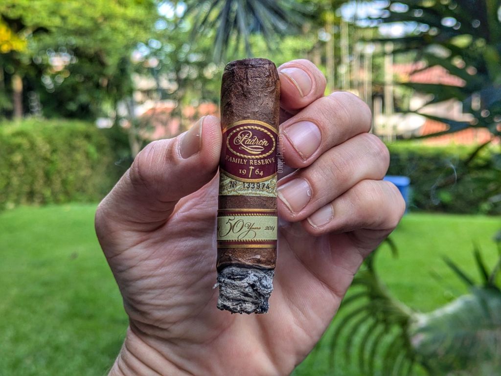 Aunque suene a queja la experiencia del último tercio, no quiero decir que no haya disfrutado la fumada, sino que es un cigarro fuerte y aunque sea apenas un robusto extra de 5 x 54, se trata de una fumada larga e intensa. Y la verdad es que con un precio de $25 por unidad, no esperaría menos. Sé que el precio es una exageración, pero realmente es una fumada extraordinaria y aunque es difícil que una fumada de un Padron sea menos que eso, en esta ocasión quedé muy gratamente sorprendido. No solo porque sea un cigarro que ha sido premiado y yo esté siguiendo la tendencia, sino porque hice todo por probarlo sin muchas expectativas, conversando con un amigo y en ocasiones algo distraído, pero fue todo lo demás lo que sufrió porque me distraje completamente con el cigarro y la experiencia.