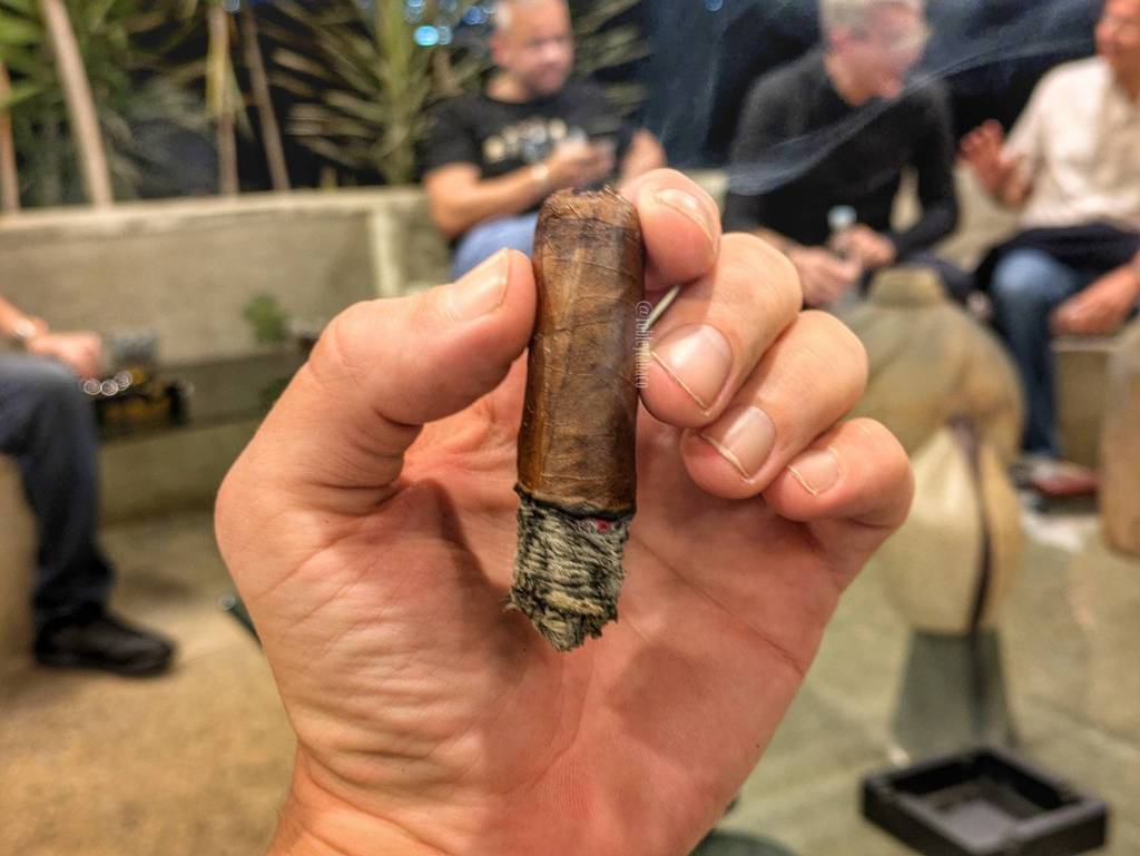 El último tercio trae los sabores que destacaron más del primer tercio, incluyendo el roble y los granos de café, pero las notas de chocolate con leche del retrogusto no regresan y eso hace que no se sienta mucho equilibrio en la fumada. Siguen habiendo notas menores de cuero, tierra, almendras y toques herbáceos, pero no tienen la misma corpulencia que antes. El humo aumenta, pero no la intensidad de sabores y me es más fácil dejarlo en el cenicero a que se apague solo luego de una hora y 15 minutos.