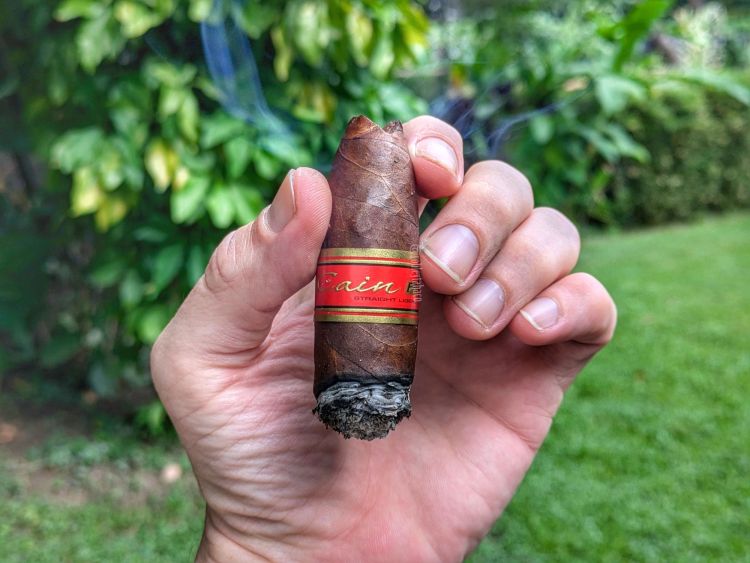 Más allá de los gustos, la línea F Straight Ligero de Cain constituye una fumada de intensidad media-alta con una fortaleza similar, de esas que rara vez te dejan queriendo fumar más. Adicionalmente, su lugar dentro del portafolio de la marca es algo confuso, pues originalmente tanto Cain como Nub entraron en una línea experimental de Oliva, llamada Studio Tobac. No estoy claro si hoy en día esa línea se mantiene, pues si quieres comprar un Nub o un Cain los buscas como tal, y la existencia de este cigarro y del que no es torpedo hablan de un «híbrido» entre esas dos líneas de Studio Tobac, pero también hay incluso un Nub del Serie V Melanio. En cuanto a la fumada como tal, pues obviamente comenzamos por los aromas en frío y este Cain tiene notas de madera y granos de café sobre la capa. Lo pico con guillotina en V y la calada en frío me da aromas a cedro, cobre y café, con una nota sorpresivamente suave de pimienta.
