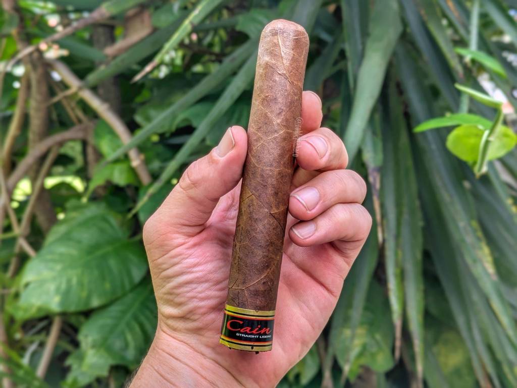 Cain no es la marca con los productos más fáciles de identificar, especialmente porque lo que ha hecho a la marca más famosa es la inclusión de las palabras Straight Ligero, principalmente en el Cain F, que es el más fuerte de la marca y posiblemente el más conocido. Pero también existe el Cain Daytona, el Cain Maduro y este Cain Habano; lo que cambia es el color de la anilla y no mucho más, pues efectivamente todos dicen Straight Ligero. El Daytona sí dice su nombre y es la única excepción. Por un rato no estaba seguro de cuál era el que estaba reseñando y asumí, erróneamente, que era el Maduro. En fin, ya definido lo que es, aquí va el comentario obligado de que estas dimensiones no me gustan, pero es lo que hay. No recuerdo de dónde saqué el cigarro.