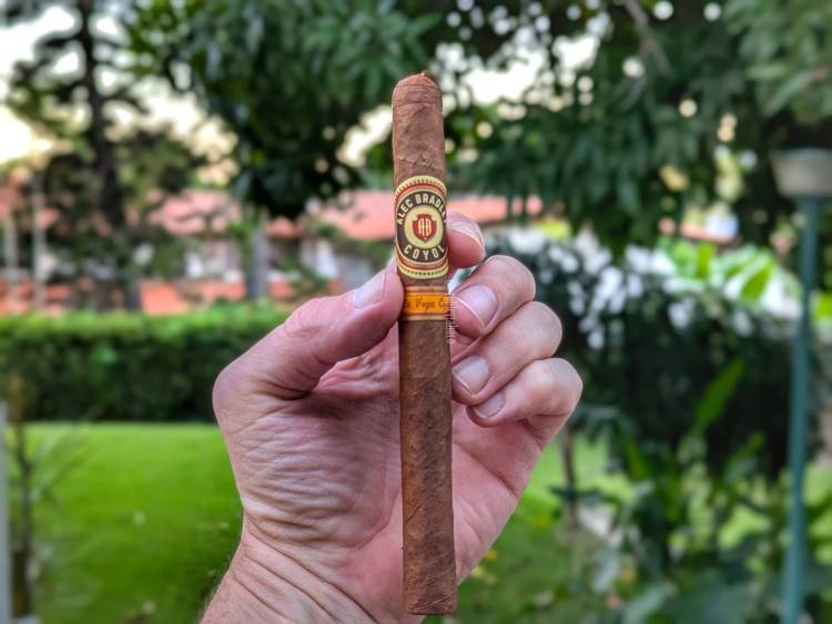 El Coyol es uno de los primeros cigarros que fumé y posiblemente Alec Bradley sea una de las primeras marcas que tomé en serio, al menos en mi paladar neófito que estaba ávido de cosas nuevas y diferentes, y Alec Bradley llenó ese vacío con una marca de fácil recordación y con blends que llenaban mis expectativas. Ahora con 10 años fumando, quizá no soy tan fácil de impresionar, aunque también tiene que ver que la marca ha cambiado un poco sus ligas, ha caído bajo y ha llegado algo, al igual que yo. Es que fue en 2016 cuando probé este cigarro por primera vez, y recuerdo que me gustó bastante. Un par de años después compré cinco cigarros y creo que terminé regalando tres, porque realmente no estaba bueno. Así que cuando un amigo me obsequió éste en petit lancero para que lo probara, pensé que era hora de darle una segunda oportunidad (o tercera?), pues quien me lo obsequió tiene varios y no sabe qué hacer con ellos.