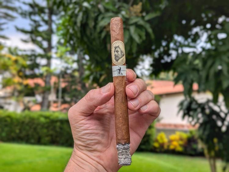Comenzamos con notas sutiles de chocolate negro, pero también notas más fuertes e roble y una nota ahumada que me recuerda a cuando comes alguna carne ahumada. Esos son sabores primarios y entre los secundarios hay notas de nueces, tierra y establo, con un retrogusto que tiene notas de mostaza y de tierra, pero también un dejo de jengibre. La intensidad es media-alta, con una fortaleza que puede estar por ese punto también. La quemada es muy buena y la ceniza se sostiene bien sobre el cigarro, aunque confieso que me da un cierto temor verla tan larga y al poco rato la dejo caer.