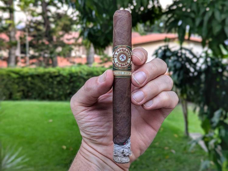 En el último tercio el sabor de café se desvanece bastante, al tiempo que el de nueces aumenta, pero no tanto como para superar al chocolate. También hay algunas notas de cuero, que si bien no tienen mucha intensidad, al menos mantienen el ocaso del Oscuro Fuerte entretenido. En construcción va quemando muy bien y sostiene una ceniza decente y al cabo de una hora y 40 minutos, finalmente dejo el cigarro sobre el cenicero.