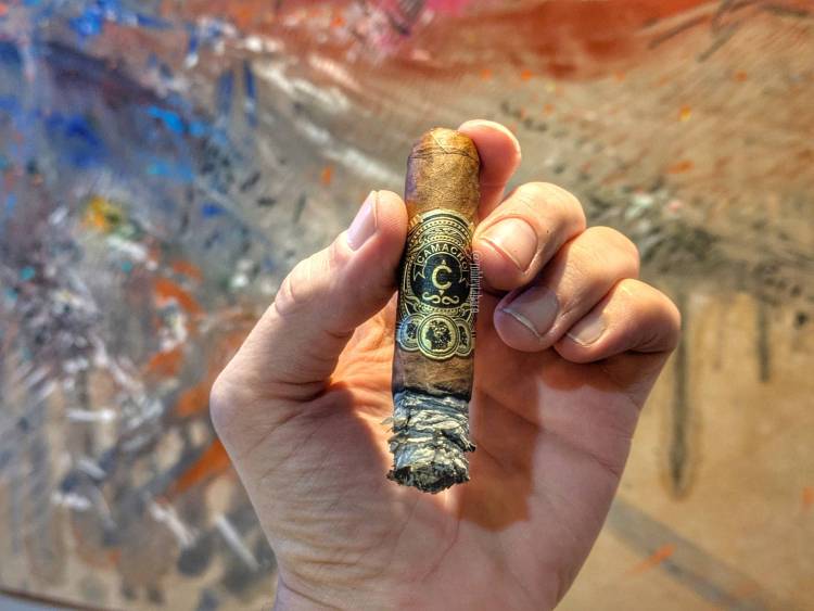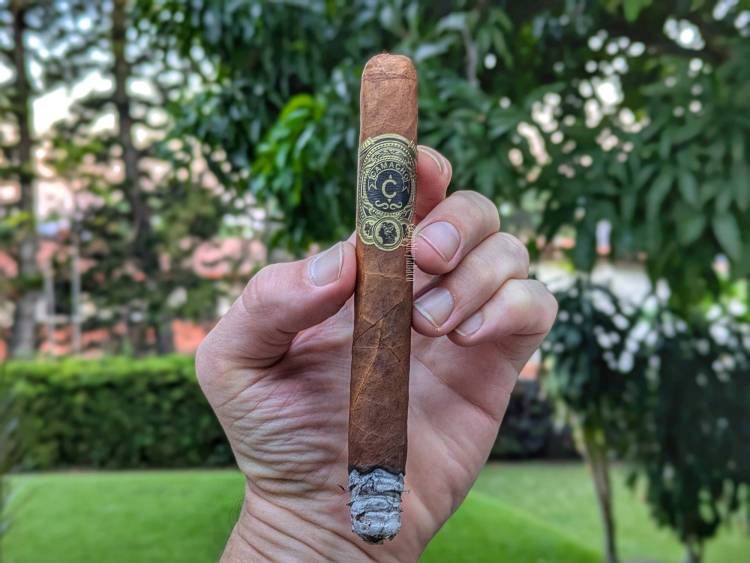En el último tercio mantiene e incluso expande esa complejidad que se vio en el segundo tercio, incluyendo un sabor inesperado a frutos rojos, pero manteniendo los sabores que venían del tercio anterior. La intensidad es media-alta con una fortaleza media y la experiencia es bastante favorable, con una ceniza que todavía está bien formada y un anillo de combustión recto y humo abundante. Me toma dos horas fumar el cigarro, que finalmente dejo en el cenicero cuando le quedaba como un centímetro sin quemar.