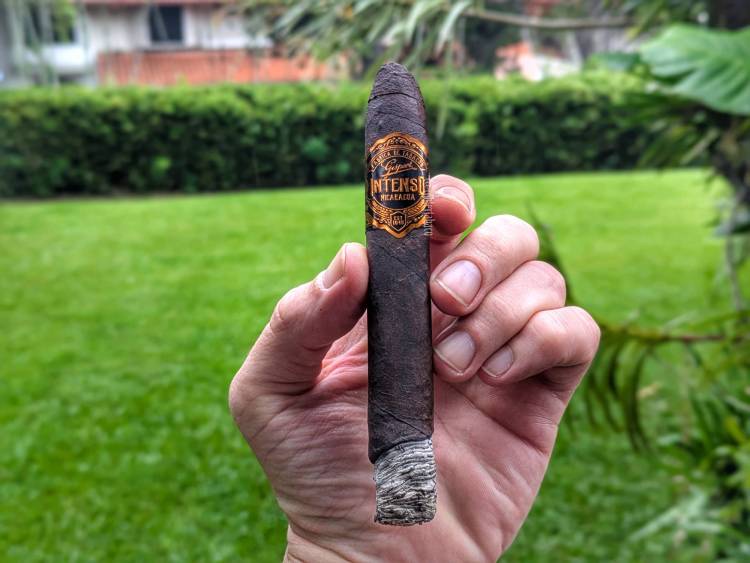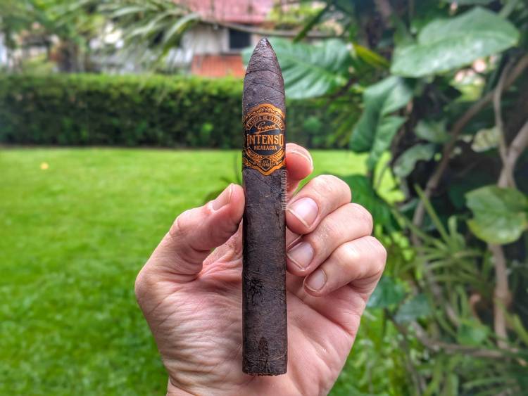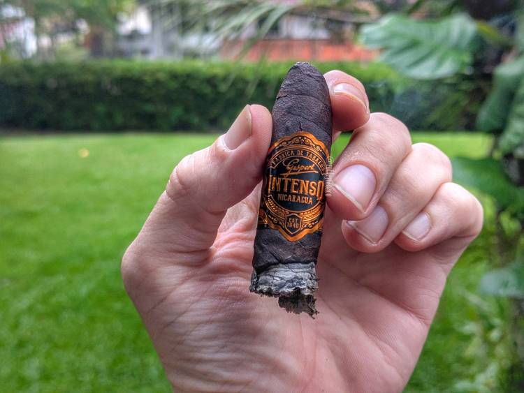 Para mi sorpresa hay sabores nuevos en el último tercio, que incluyen principalmente avellanas y en retrospectiva es muy posible que esas nueces que sentí en el tercio anterior eran, en efecto, avellanas. Los sabores de chocolate y café siguen siendo destacados y bien podrían ubicarse entre los principales, pero también hay abundantes notas de tierra y cuero y, sorprendentemente, sin pimienta en el paladar, aunque algo sí se mantiene en el retrogusto, así como la nota dulce de melaza. Al cabo de una hora y 50 minutos este Intenso llega a su fin, con una intensidad alta (haciendo honor a su nombre) y una fortaleza media.