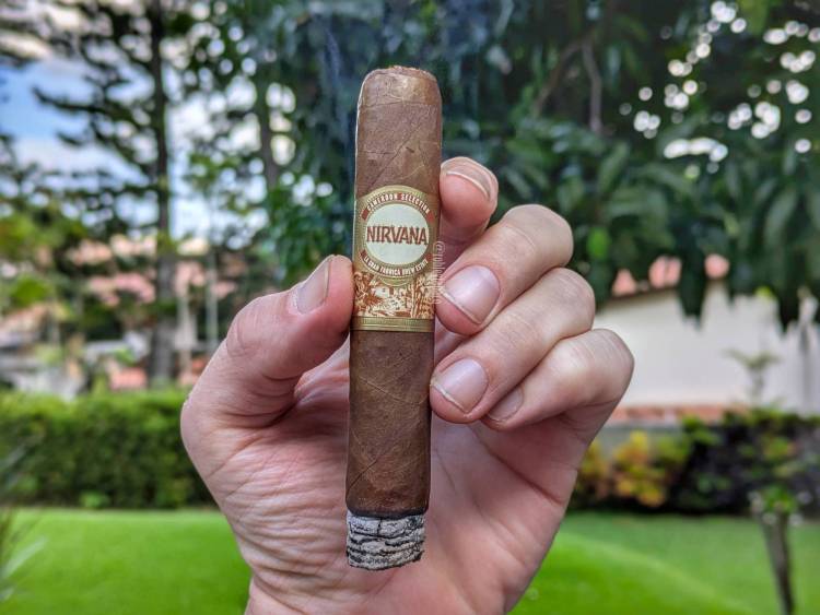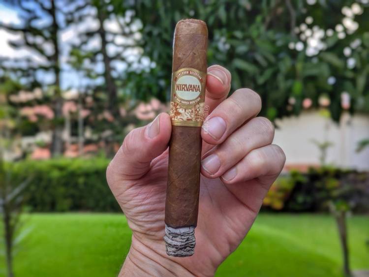 El Nirvana realmente quema muy decente, muy recto y con una experiencia bastante suave en el retrogusto y algo más intensa en el paladar, con sabores a esa salsa de carne, madera de cedro y chocolate, lo cual hace una combinación bastante rara. La pimienta es blanca en el paladar y negra en el retrogusto, aunque no tan fuerte y en efecto, la intensidad es media con una fortaleza media-baja, pero buen tiro, buen anillo de combustión y un ritmo controlado.