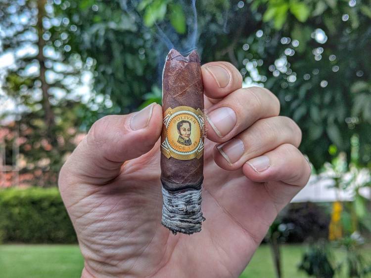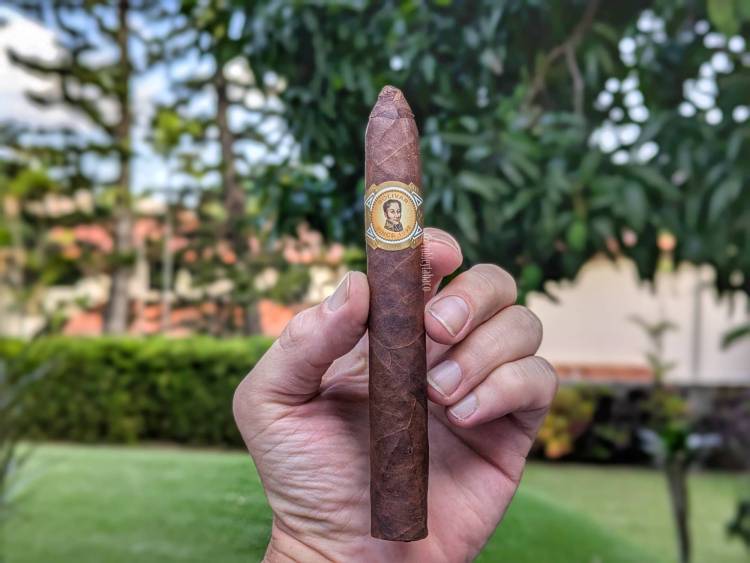 Yo no lo creía y tuve que revisar, pero efectivamente este es el primer Bolivar no cubano que pruebo y que reseño. Revisando un poco su página web y las tiendas online, es una marca de General Cigars que es bastante sobria y escasa en productos y variedad, pero son producidos en Honduras por una fábrica que también ha hecho las versiones no cubanas de Punch y Hoyo de Monterrey. El creador de esta fábrica ya murió, pero era un cubano llamado Estelo Padrón, quien escapó de Cuba en 1969 y trabajó con Padrón (no menciona si son familia) hasta 1971, cuando se mudó a Honduras a trabajar en esta fábrica. Estelo sostenía que su inspiración en esta marca no venía de la marca cubana, sino de Simón Bolívar y su cruzada libertadora por América, y que el nombre del cigarro viene de la unión de los pueblos que liberó. Ajá, claro. El que la anilla sea igual es pura coincidencia.