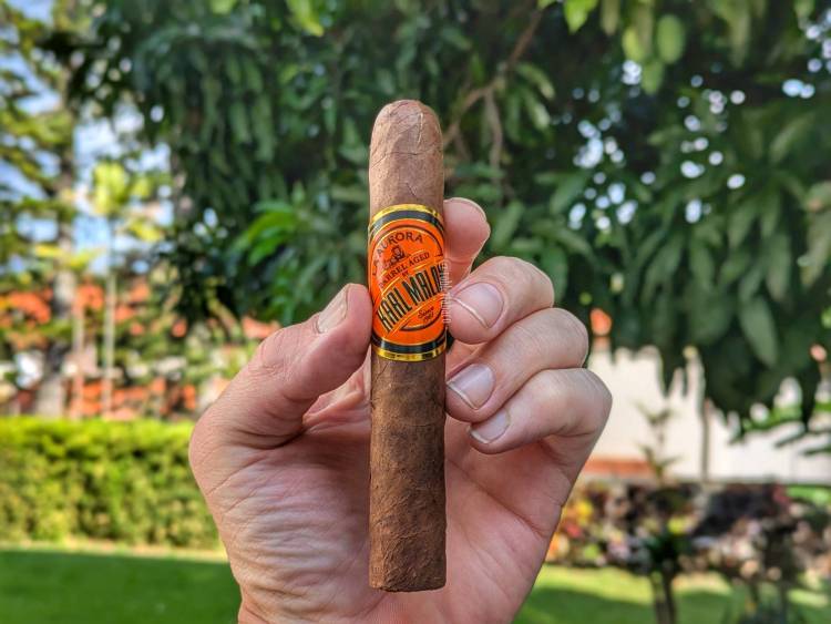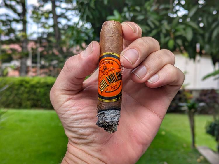 Para alguien que ha visto la cobertura de la convención anual de lo que anteriormente se conocía como el IPCPR y ahora es el PCA en Las Vegas, que reúne a los mayores productores de tabaco del nuevo mundo, distribuidores y fabricantes de accesorios, ver la gran figura del basquetbolista Karl Malone se ha hecho habitual. Al principio pensaba que era un fanático más, pero luego vi que existe un tabaco que lleva su nombre y que es hecho por La Aurora. Así que cuando tuve la oportunidad de adquirir uno me puse a investigar un poco y si bien el tabaco lleva su nombre, también dice Barrel Aged. Resulta que el capote y la tripa de este cigarro se almacenan en barricas que anteriormente contuvieron ron durante 6 meses antes de ser torcidos. La capa es Habano ecuatoriana y el capote proviene de Ecuador también, aunque no especifica el tipo de tabaco que es. La tripa viene de Nicaragua, República Dominicana, Brasil y Perú. En esta ocasión, se trata de un Robusto 5 x 50 que voy a probar.