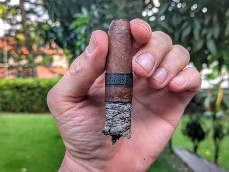 En el último tercio el Creature se ubica con intensidad alta, aunque creo que llegó a ello cuando superó la mitad, pero es en este tercio donde se despejan las dudas. La fortaleza se mantiene en media-alta y esa sí que no aumentó después del punto medio. Los sabores siguen siendo intensos de chocolate, pero también de pimienta y sensación picante, aunque no hay matices de chocolate más allá de ese que parece un brownie, aunque mi esposa tiende a ponerle café a la mezcla y esa nota de café se siente en el chocolate del brownie también. Pero ya no hay sabores de canela y muy poca madera, aunque sí hay un toque de tierra seca. Me toma cerca de una hora y 45 minutos para fumar el Creature completo.
