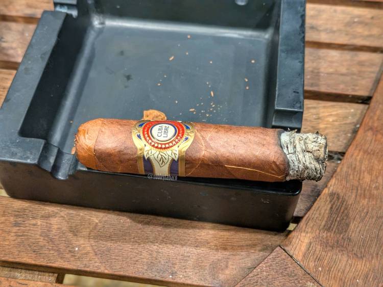 En la segunda mitad el Cuba Libre Core se siente más dulce y es ese sabor el que más destaca, y aunque la intensidad se mantiene en media-baja, la fortaleza alcanza niveles de media y sigue ascendiendo cuando comienza la segunda mitad, hasta llegar a media-alta o muy cerca cuando estoy en las últimas caladas. Este aumento de fortaleza se percibe en una sensación más picante, pero no necesariamente en sabores de pimienta y si bien no hay sabores nuevos, el cigarro mantiene sus sabores de cuero, madera y café. La quemada no es tan buena como en la primera mitad, pero con un par de toques técnicos se mantiene controlada. Me toma un poco más de una hora fumarlo hasta que no queda más que disfrutar.