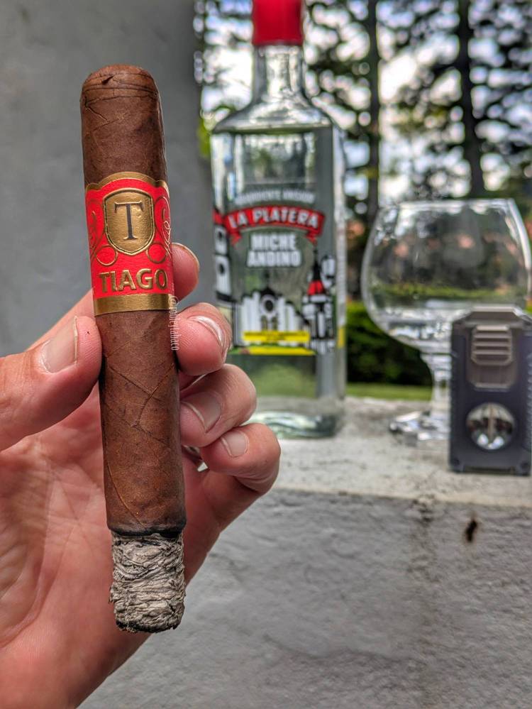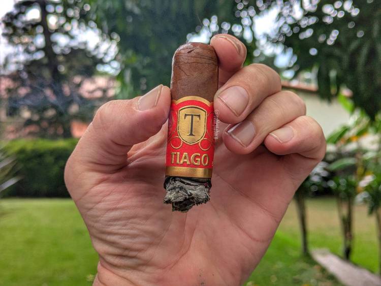 En el último tercio los sabores de tierra y chocolate son los principales, nuevamente peleando por el liderato pero sin superarse de manera regular. La pimienta, pasas y cedro se mantienen entre los sabores secundarios pero esa nota mineral se siente también y no es dependiente en realidad del sabor de tierra. Esta tendencia de sabores acompaña al Tiago Familia Elegida Habano hasta el final, que llega con una intensidad media y una fortaleza media-baja, que caracterizó a casi toda la fumada y me toma una hora y 25 minutos acabar.