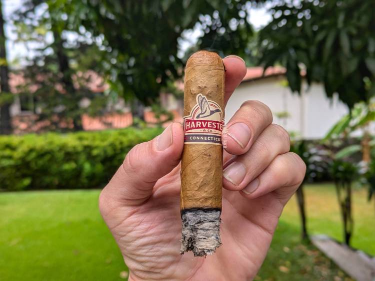 En el mercado de los low cost es muy fácil hacer un producto que no sea bueno, aunque uno pensaría que es más fácil hacer algo bueno. La verdad es que hay de todo y este Harvester & Co. cumple perfectamente con lo que esperaba, incluso siendo un toque más fuerte y picante de lo que los Connecticut suelen ser. El hecho que la marca haya sido creada en 1909 no quiere decir que el estilo de la liga recree lo que se fumaba entonces… en realidad no tengo ni idea de cómo sería una liga de esa época. Pero este se trata de un cigarro muy decente, a un precio bajo y una construcción respetable. Viendo un poco las otras vitolas, me doy cuenta que existe con cepo 60 y cepo 50 también, siendo el cepo 50 en Toro y Churchill. Creo que en Toro podría estar más concentrado y si sostiene esta calidad de construcción, mejor. Pero el Robusto sorprende bastante y se asemeja al estilo de un Oliva Connecticut, por si necesitas una referencia.