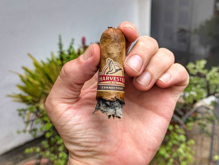 Como suele suceder con cigarros de este estilo y precio, el último tercio no es más que una extensión del segundo, con una sensación ligeramente más picante y una quemada algo más accidentada, pero por lo demás, sigue siendo suave. La intensidad se ubica en media, al igual que la fortaleza y los sabores prácticamente no cambian. Me toma una hora y 15 minutos fumar el Harvester & Co. Connecticut hasta el punto donde ya me quema los dedos.